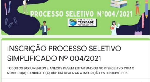 Tiveram início nesta segunda-feira (29/11) as inscrições para 60 vagas e cadastro de reserva para 219 classificados no Processo Seletivo 004 da Secretaria Municipal de Educação de Trindade.