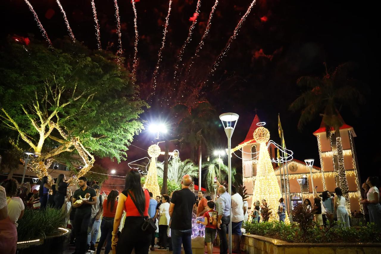 Com a praça cheia, foi realizado o acendimento das luzes, que iluminam toda a área central, com valorização de cada detalhe da decoração preparada para este ano. A Praça da Matriz recebeu iluminação especial na fachada da igreja, peças decorativas, presépio, elementos temáticos e paisagismo iluminado em ambiente acolhedor para contemplação.