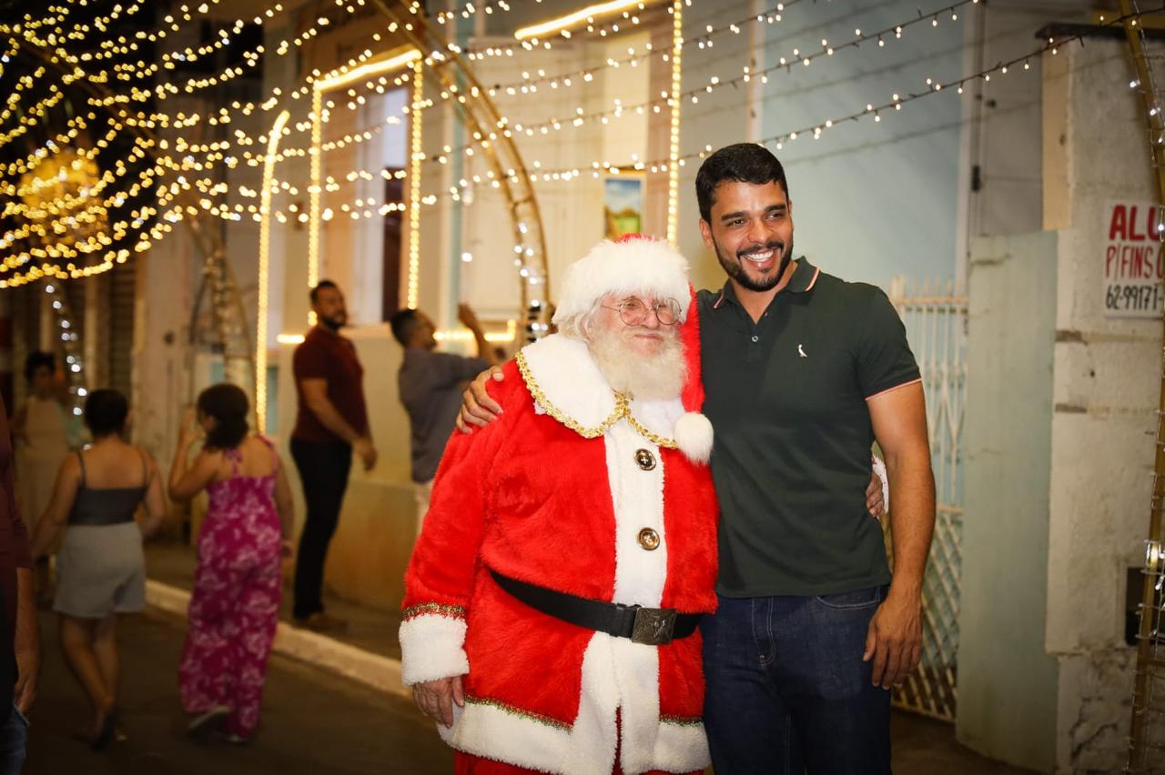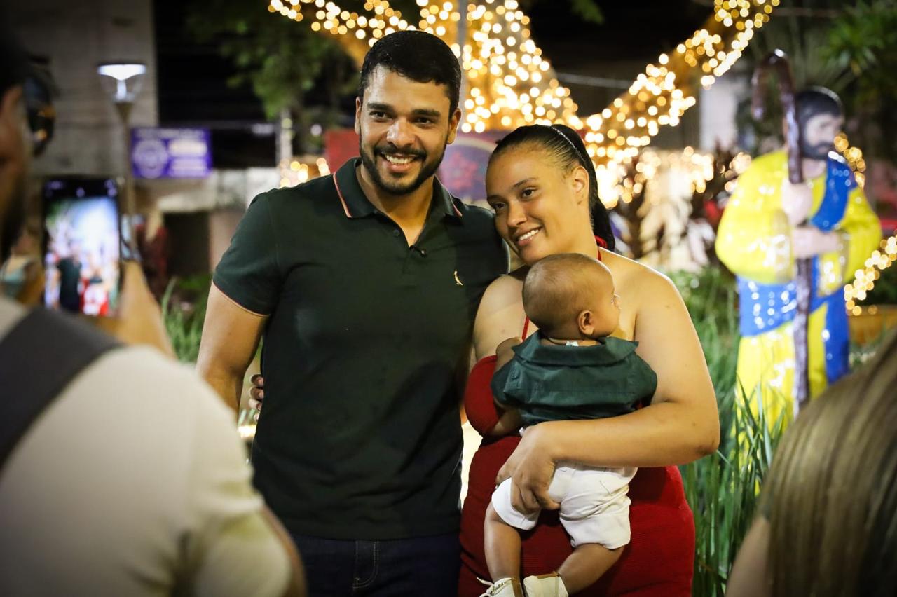 Prefeito Marden Júnior realiza acendimento das luzes do Natal dos Sonhos de Trindade ao lado dos pais Marden Gabriel, primeira-dama Dorinha e da população na Praça da Matriz e no Beco dos Aflitos
