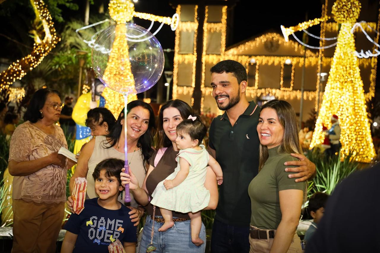 Prefeito Marden Júnior realiza acendimento das luzes do Natal dos Sonhos de Trindade ao lado dos pais Marden Gabriel, primeira-dama Dorinha e da população na Praça da Matriz e no Beco dos Aflitos