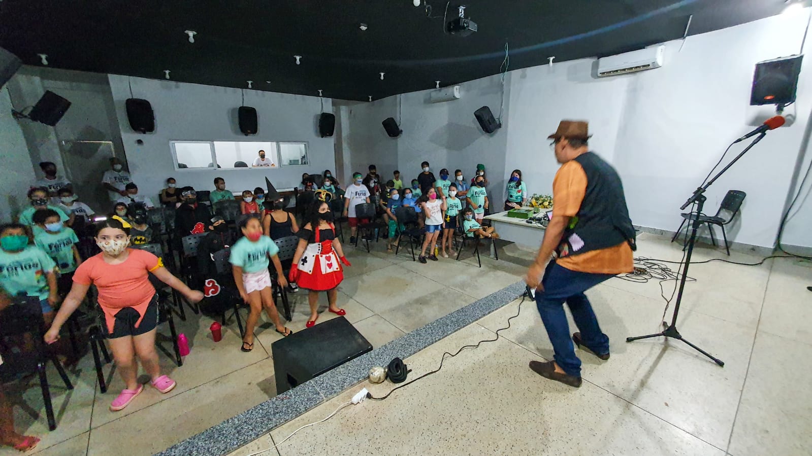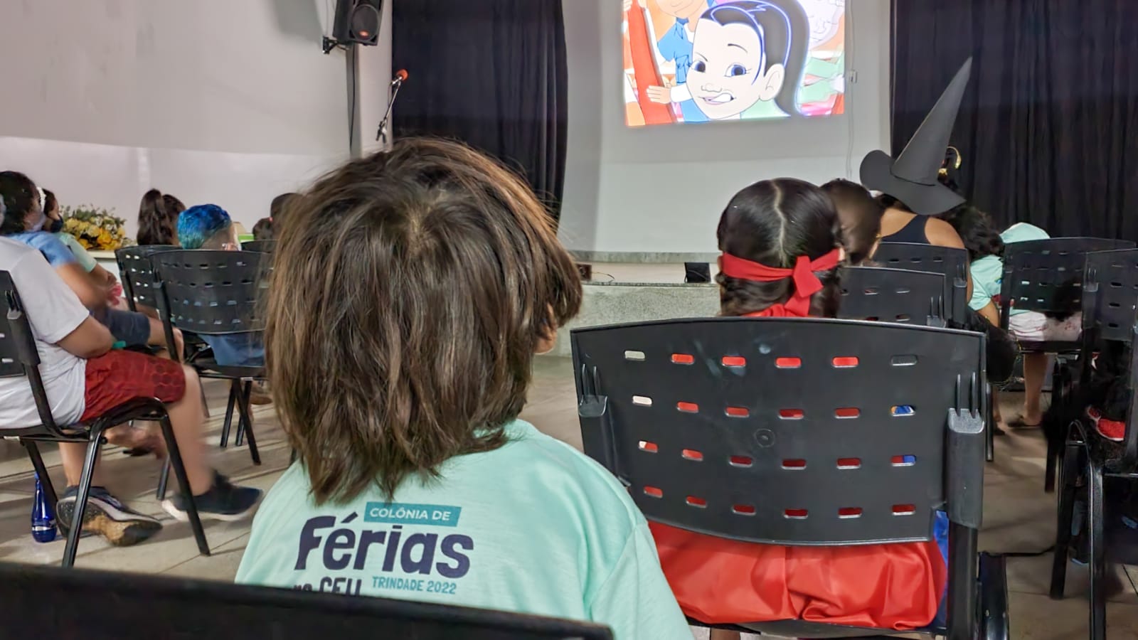 As crianças iniciaram o último dia da colônia de férias com palestra do odontólogo, doutor Dyego Marques, sobre saúde bucal. Em seguida, ouviram histórias infantis e logo depois foi a hora do lanche. Por último, aconteceu o baile à fantasia, quando brincaram muito.