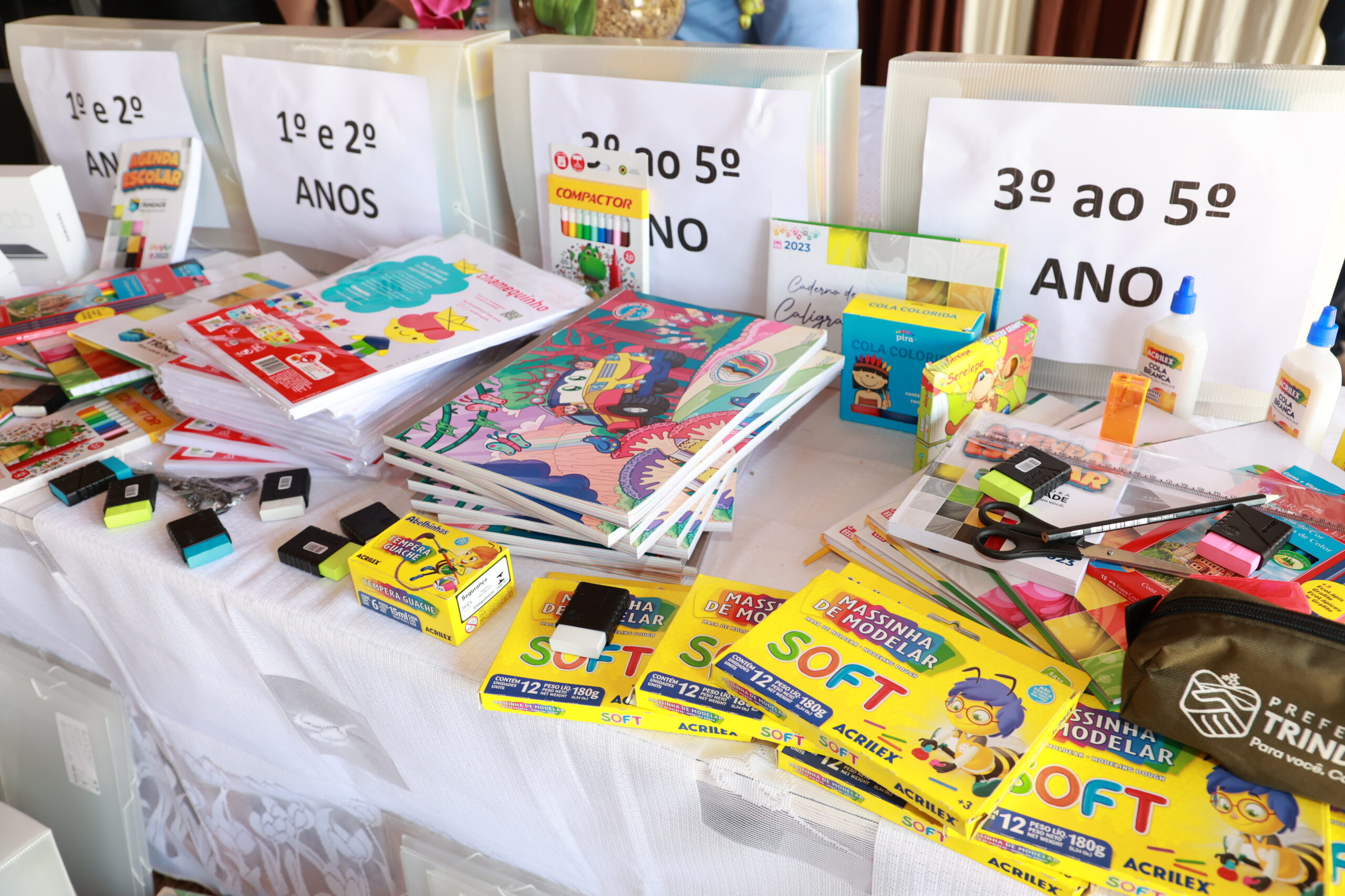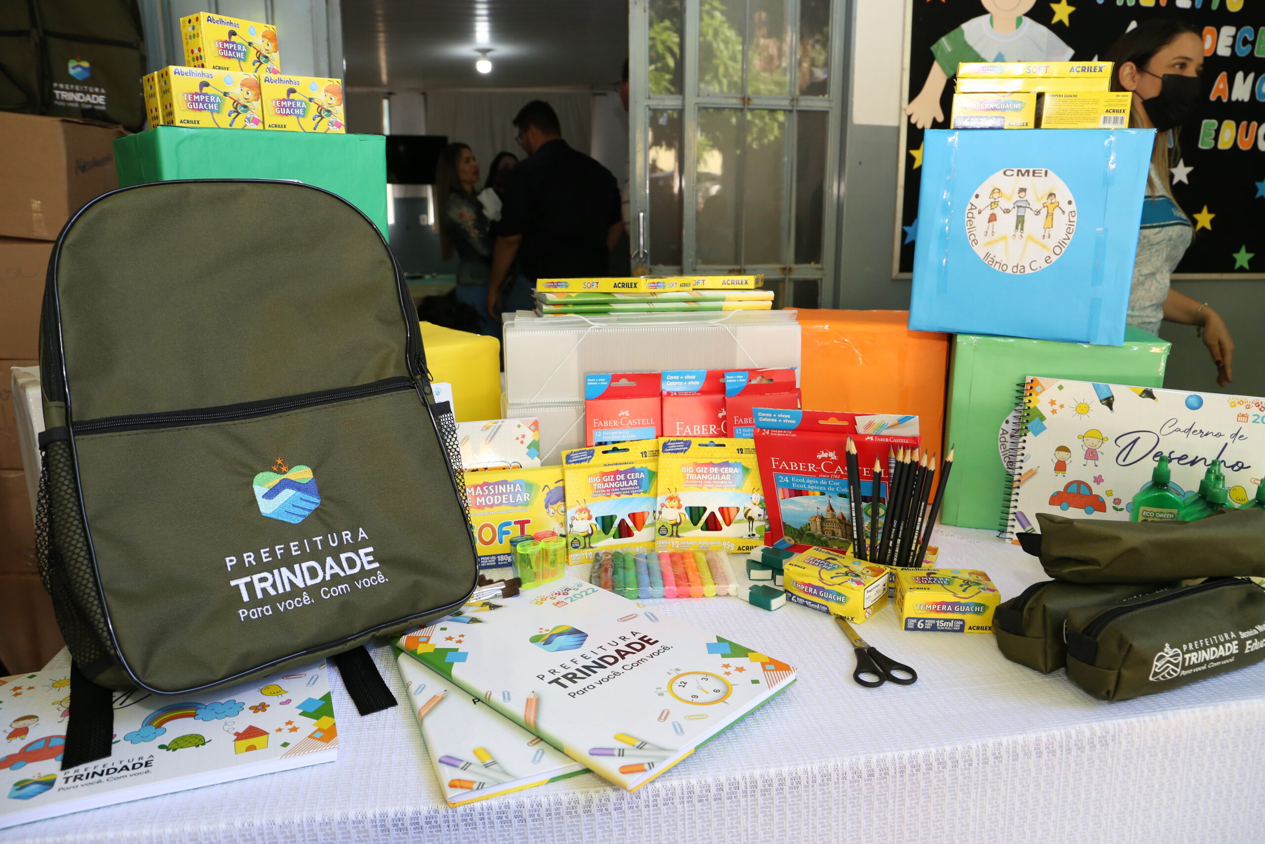 O kit escolar é outro benefício que os mais de 16 mil alunos da rede municipal de ensino de Trindade recebem todos os anos. O investimento é a partir de recursos próprios da prefeitura e chega a mais de R$ 9 milhões. Em cada kit são vários itens que atendem às demandas e necessidades pedagógicas das turmas.