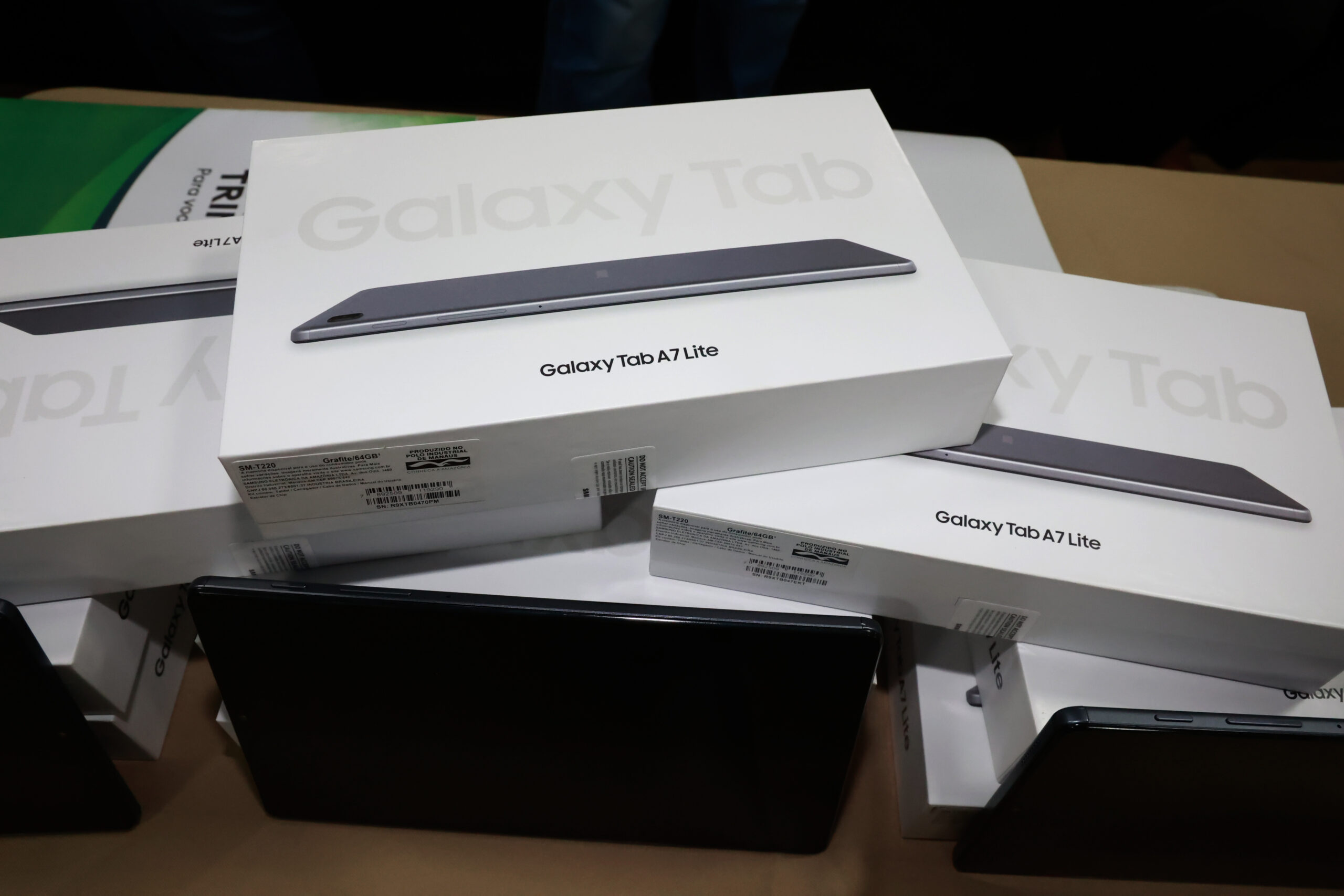 A entrega dos notebooks, cromebooks e tablets foi muita comemorada. Com mais de R$ 10 milhões em investimentos próprios e do Fundeb, foram entregues 801 notebooks aos professores, 2.200 cromebooks aos alunos de 4º e 5º ano e 70 tablets.