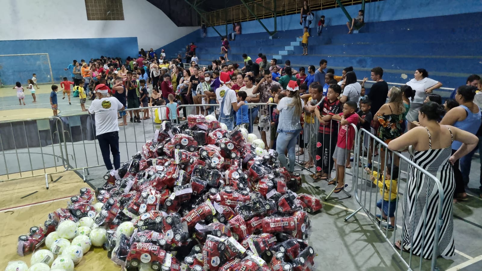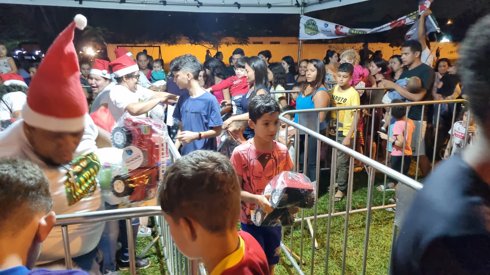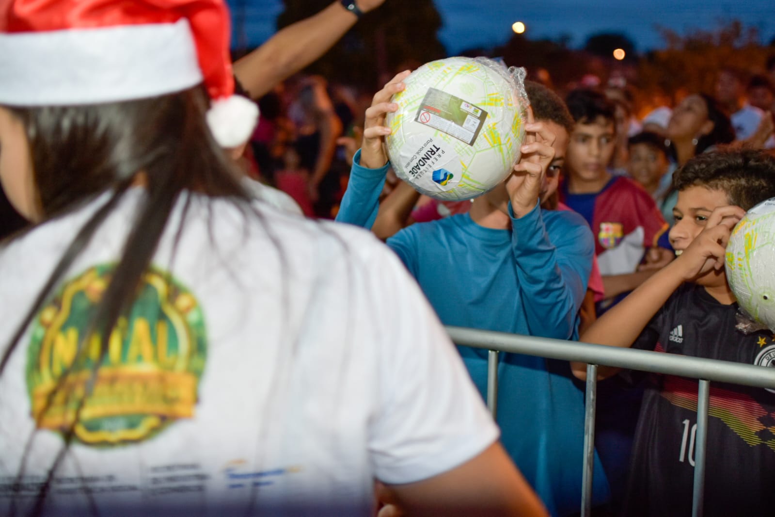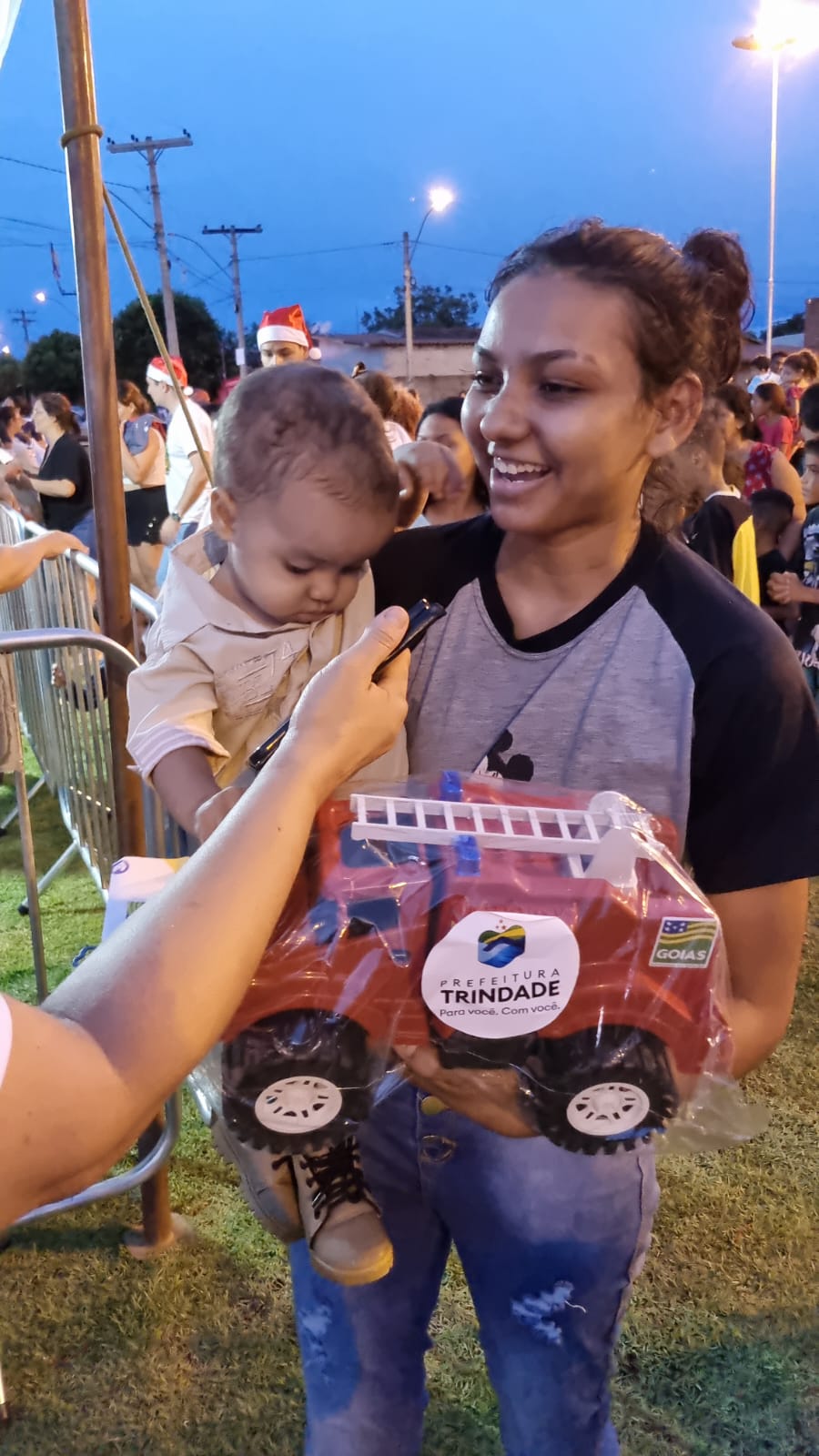 Focada em “entregar alegria”, como definiu o prefeito Marden Júnior, a Caravana Natal Solidário da Prefeitura de Trindade fez a festa das crianças da Região Leste na noite de segunda-feira (19/12). A entrega de 20 mil brinquedos segue nesta terça e será encerrada na noite de quarta-feira (21/12). Na programação de Natal ainda tem entrega de óculos para crianças na quinta-feira (22/12), no Projeto Olhar Solidário