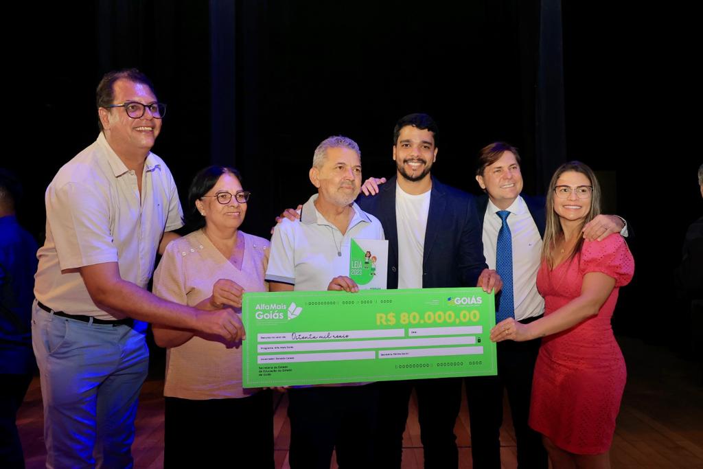 O prefeito Marden Júnior participou, nesta quinta-feira (03/08), no Auditório Deocleciano Moreira Alves, do Centro de Convenções de Anápolis, da entrega do Prêmio Leia 2023, do Programa AlfaMais Goiás, do Governo do Estado, a cinco unidades de ensino de Trindade. A premiação, entregue pelo governador Ronaldo Caiado, tem o valor de R$ 80 mil. O valor será aplicado em benefícios para as escolas, como reformas, bonificações a professores e compra de recursos pedagógicos que serão utilizados durante as aulas.