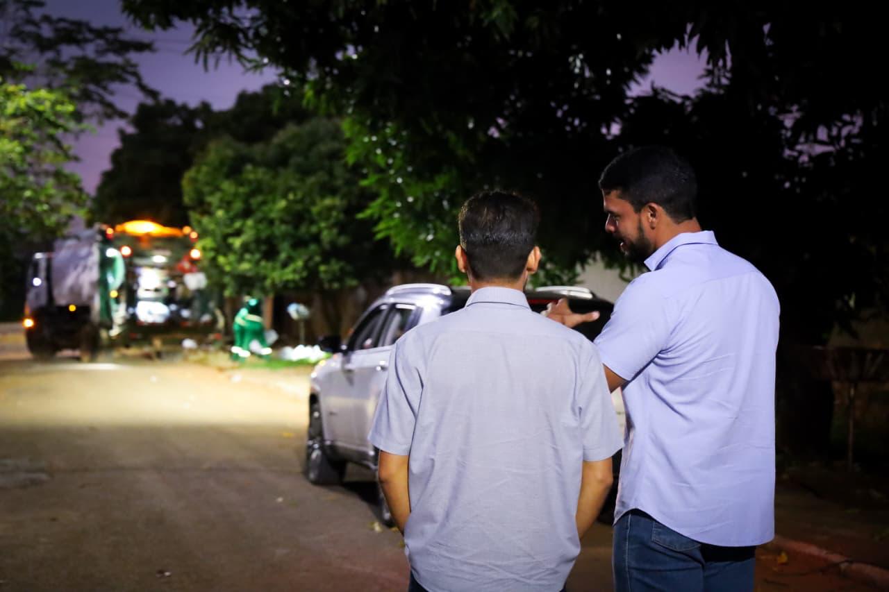 Ao lado do secretário municipal de Infraestrutura, Gustavo Queiroz, o prefeito esteve presente no momento da saída das equipes, quando seis rotas simultâneas de coleta foram mobilizadas para ampliar a capacidade operacional e alcançar o maior número possível de bairros.