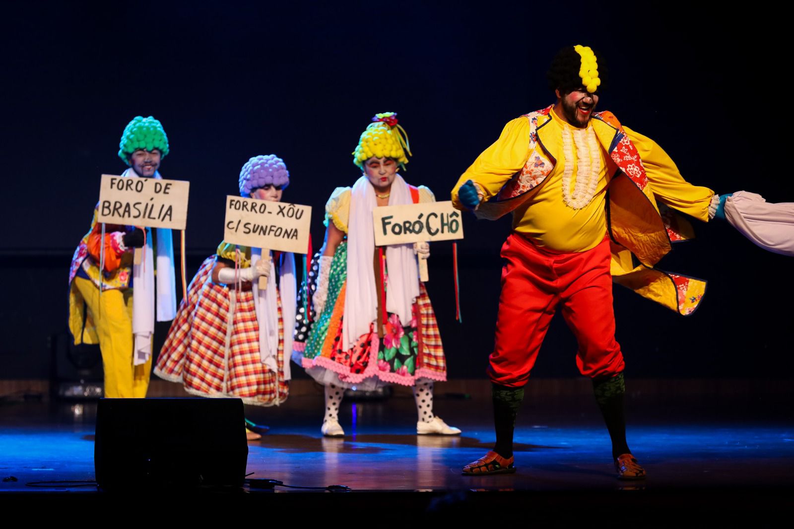 A composição visual do espetáculo foi cuidadosamente planejada. Figurino e maquiagem contribuem para reforçar os arquétipos representados em cena. “O figurino foi pensado para traduzir a alegria, a fé e o exagero típico das expressões populares brasileiras. Usamos cores vibrantes, padronagens diversas e volumes que remetem ao barroco do interior e às festas do povo. Cada peça é quase uma personagem à parte”, explicou a figurinista e atriz Bya Melo.