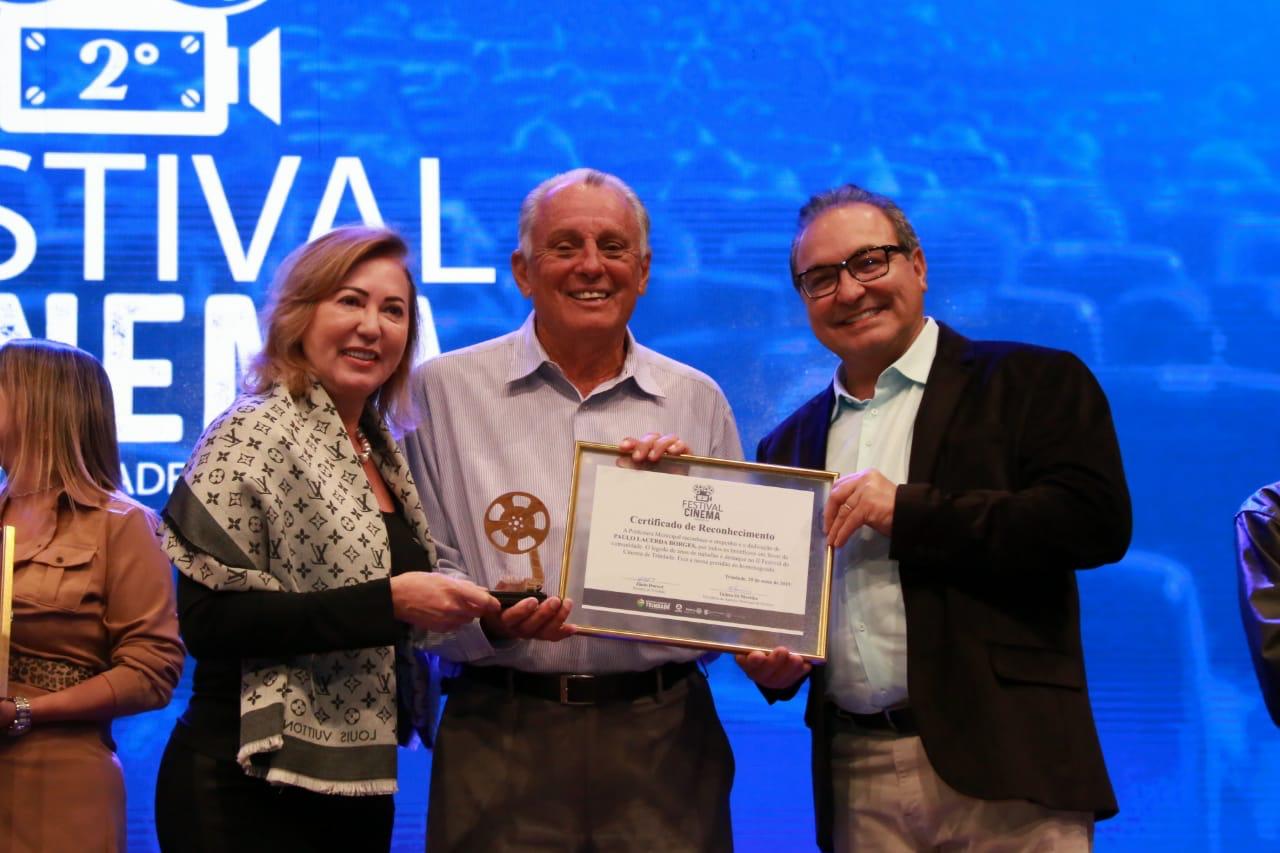 O prefeito Jânio Darrot, a primeira-dama, Dairdes Darrot, e a presidente da Agência Municipal de Turismo, Talitta Di Martino, participaram do encerramento do 2º Festival de Cinema de Trindade na noite deste sábado (25/05). A Praça da Matriz recebeu um público recorde que se divertiu muito ao som da banda Liga Joe. A organização do festival fez homenagens aos atletas da Caminhada Ecológica e ao jornalista Cristiano Vaz (in memorian). Na mostra, os filmes Caminhada Ecológica: Preservação com Fé; Tributo a Cristiano Vaz; e, no encerramento, Fé na TV: A imagem do Pai Eterno pelo Brasil. O prefeito Jânio Darrot celebrou o sucesso de mais uma iniciativa cultural de sua gestão. “Continuaremos a realizar eventos que movimentem nosso calendário de atividades turísticas voltadas para o incentivo às manifestações artísticas, esportivas e religiosas”, conclui. #PrefeituraDeTrindade #FestivalDeCinema