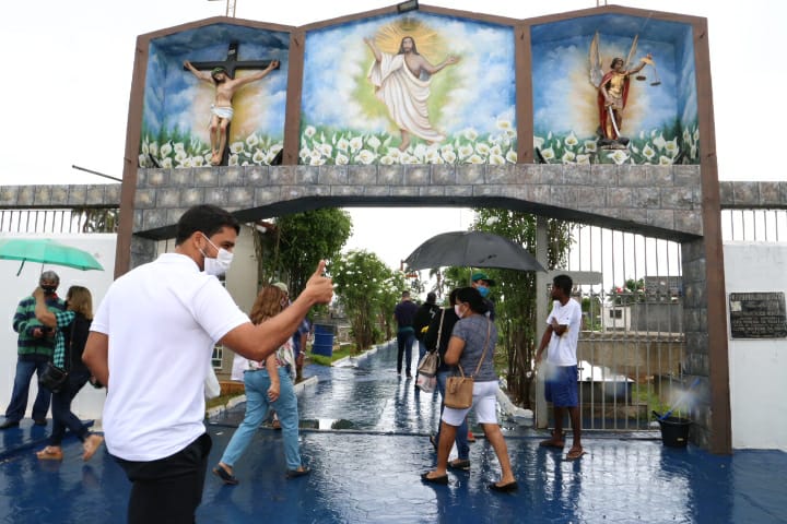 Aspersão de álcool e controle de temperatura também foram realizados por conta do controle da pandemia de Covid-19. Este ano, com o avanço da vacinação em Trindade, o cemitério foi totalmente liberado para visitação no Dia de Finados, diferente do ano passado.