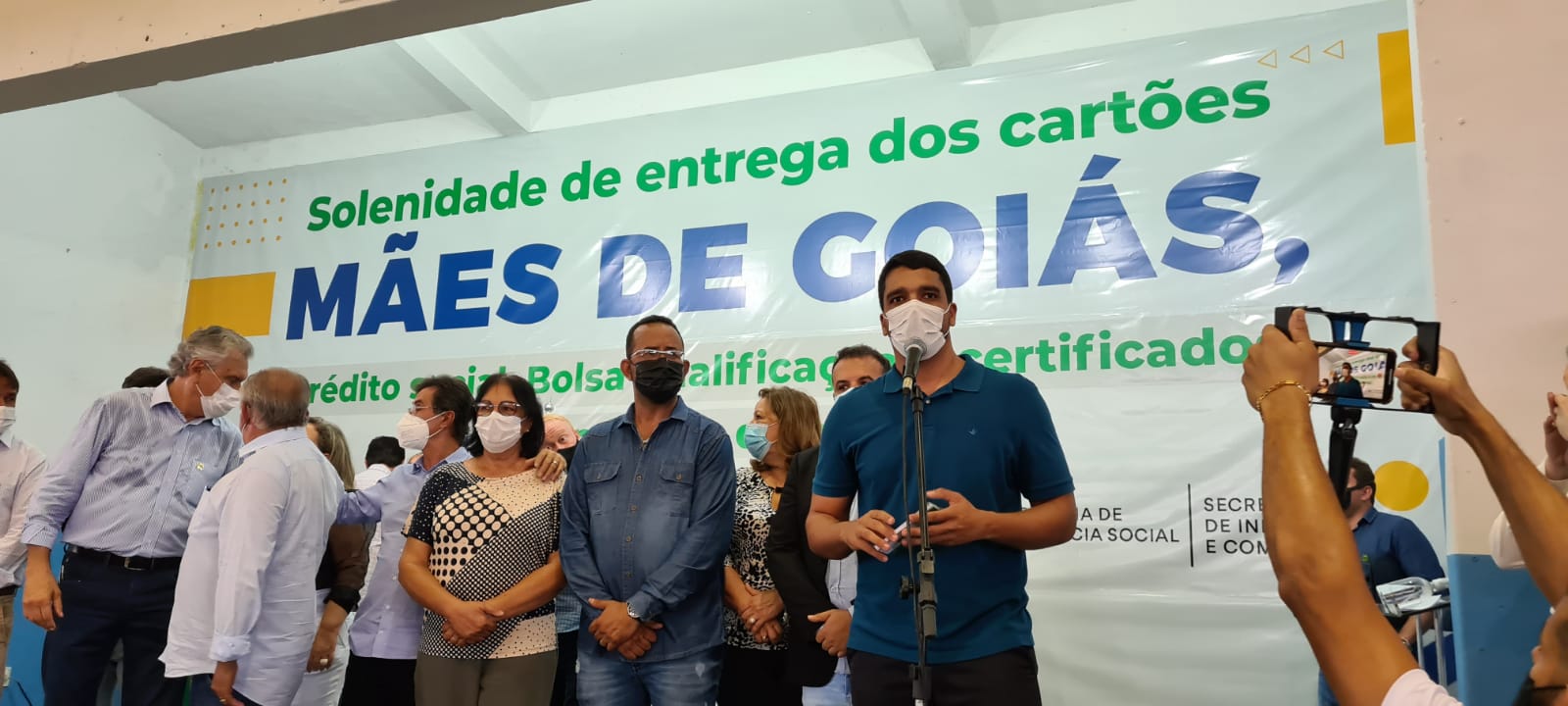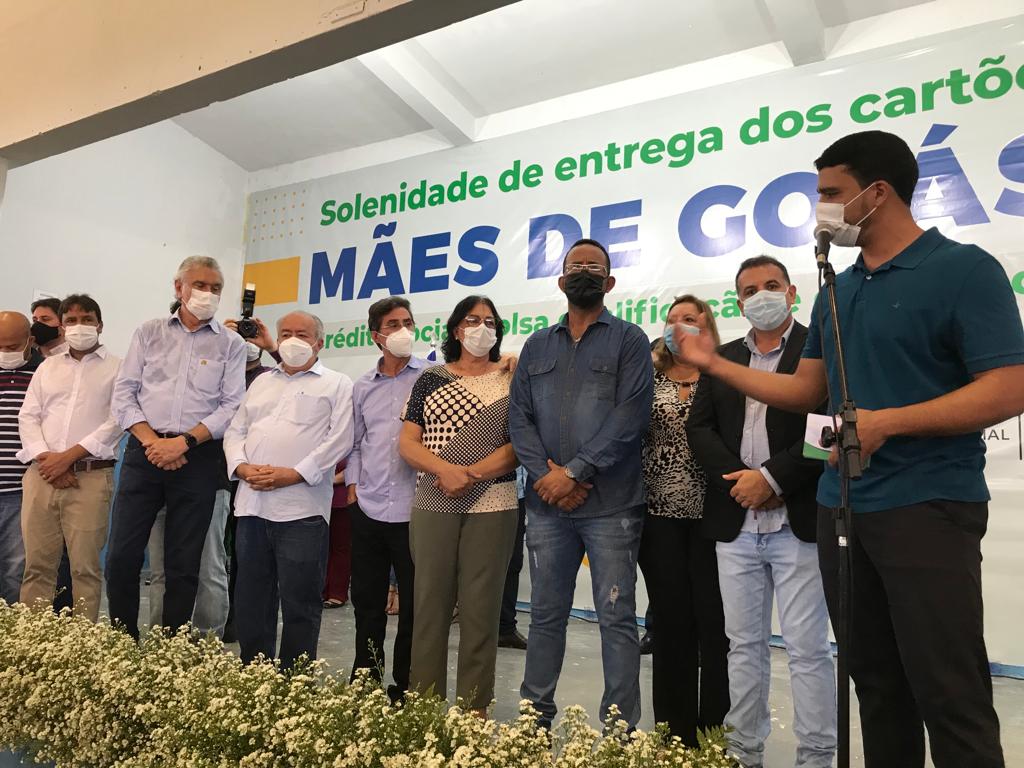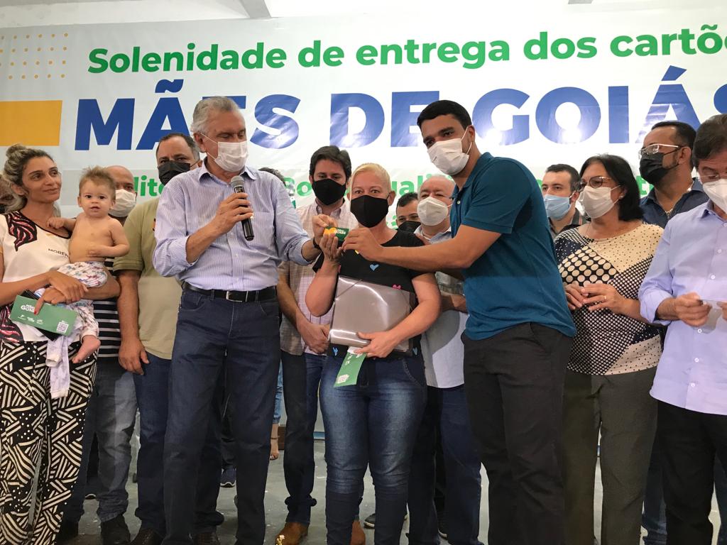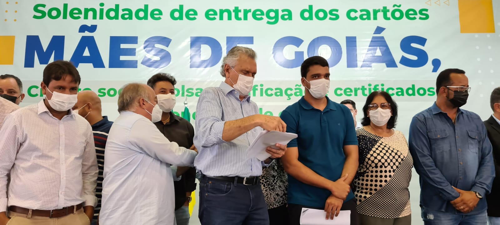 Caiado veio entregar os cartões do Programa Mães de Goiás para 1.668 mães de crianças de 0 a 6 anos de idade, inscritas no Cadastro Único. Elas receberão R$ 250 até o dia 10 de todo mês para compras em estabelecimentos comerciais de Trindade como supermercados e farmácias.