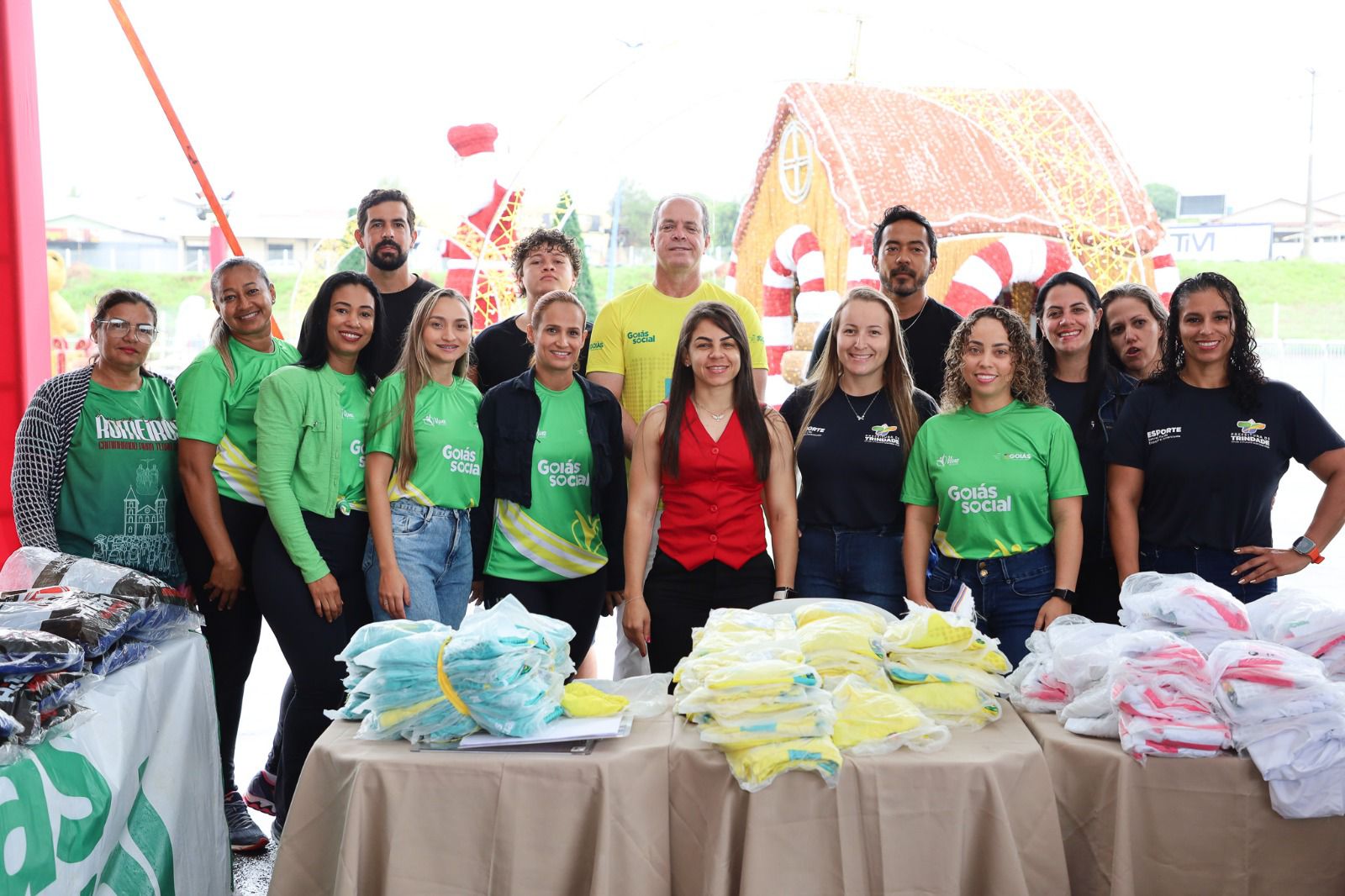 Coordenadora do Goiás Social, primeira-dama participa de ato público no Carreiródromo Municipal com distribuição de mais de 800 benefícios, brinquedos e lançamento do programa esportivo Pé na Areia. Marden Júnior destaca parcerias com Governo do Estado