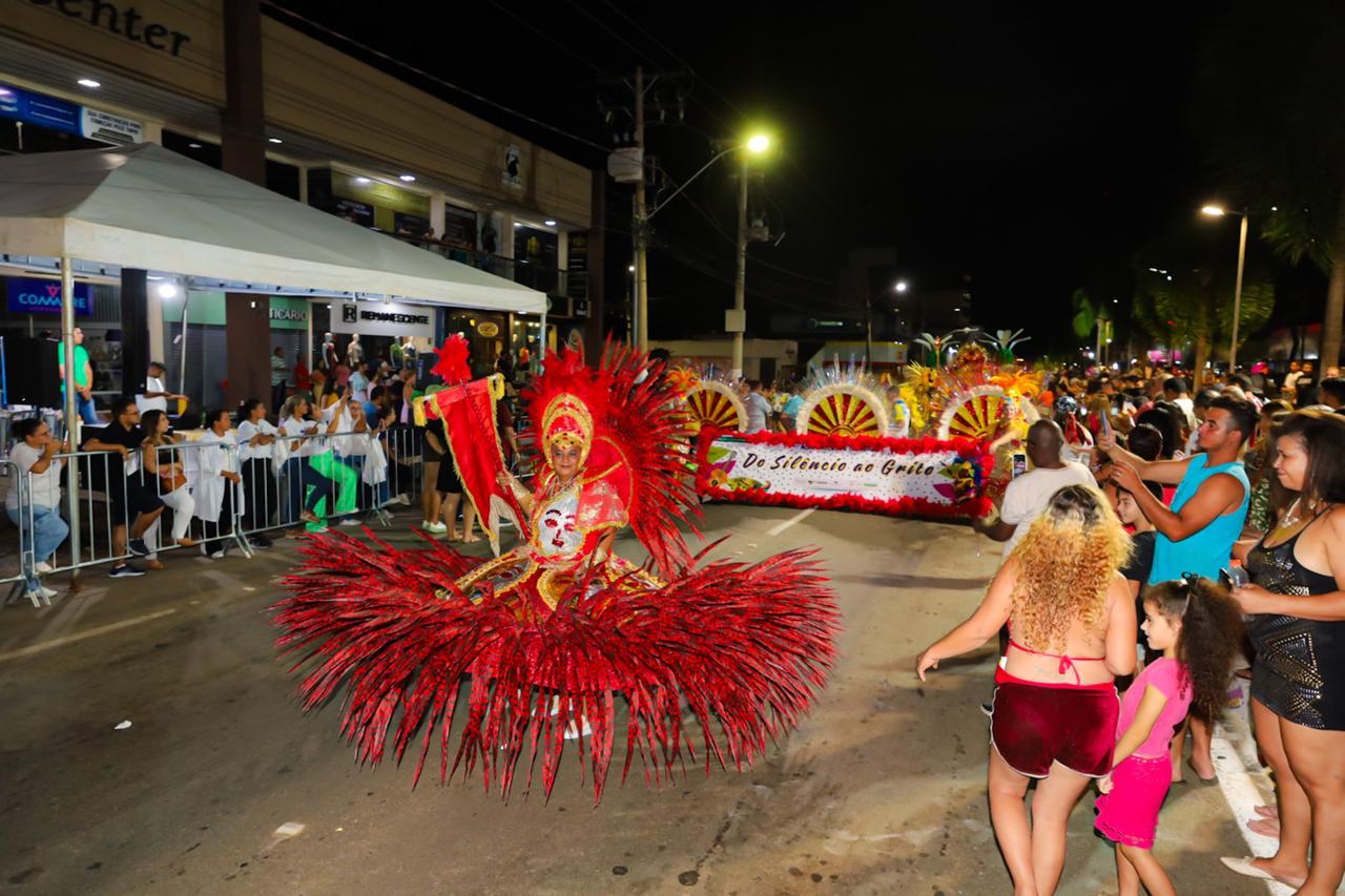 O Grupo Desencanto realizou o desfile de Carnaval em Trindade no domingo (15/02), com o tema “Do grito ao silêncio”, em uma noite de celebração da cultura popular. O evento reuniu moradores e visitantes em um espetáculo marcado por cores, criatividade, fantasias, carro alegórico e muita alegria.