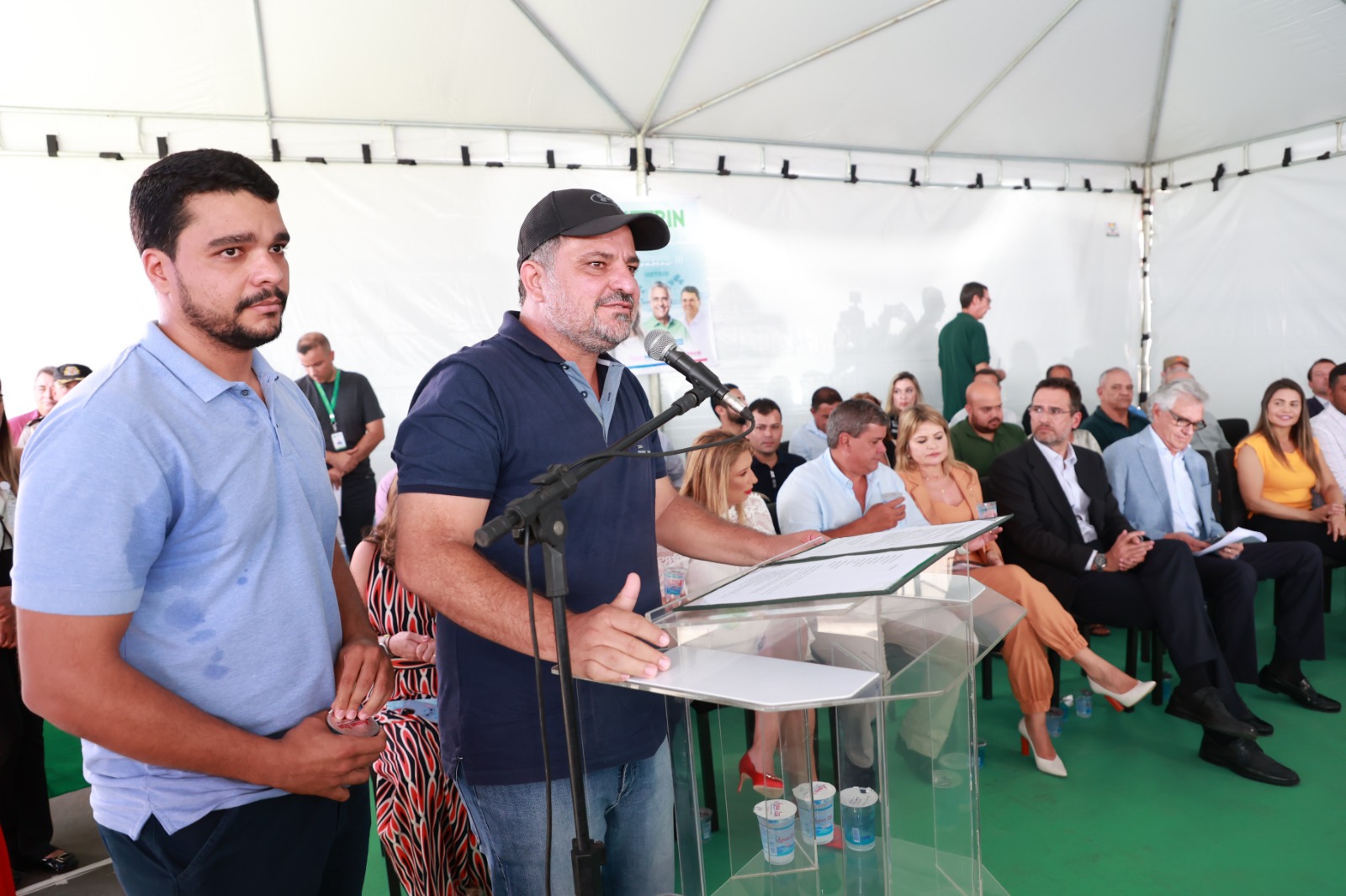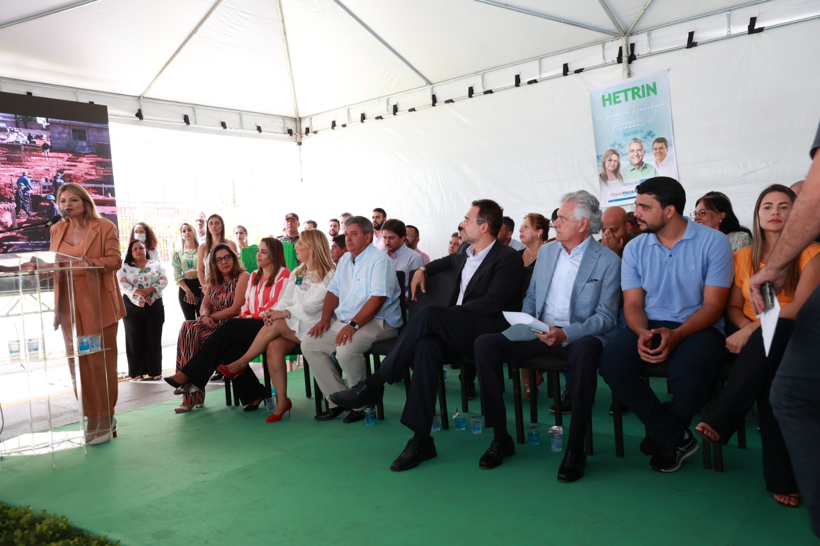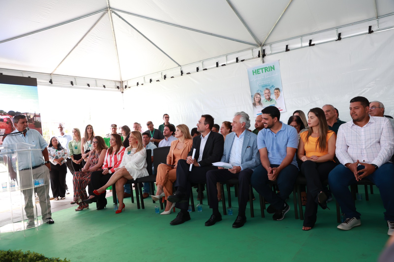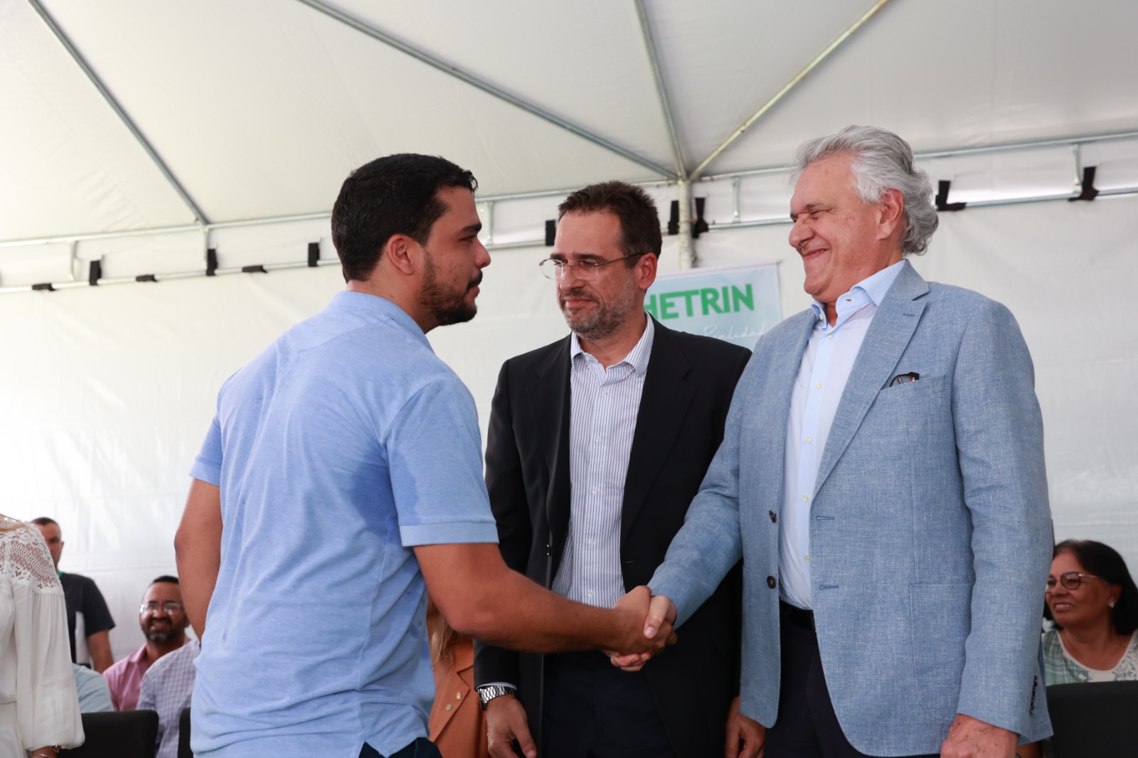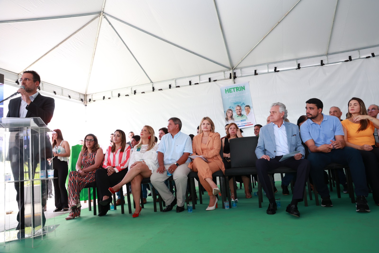 Ronaldo Caiado fez um cumprimento especial às forças políticas de Trindade presentes no evento, citando, além de Marden, seus familiares, os deputados Flávia e George Morais, o deputado estadual Cristiano Galindo e o ex-prefeito Jânio Darrot.