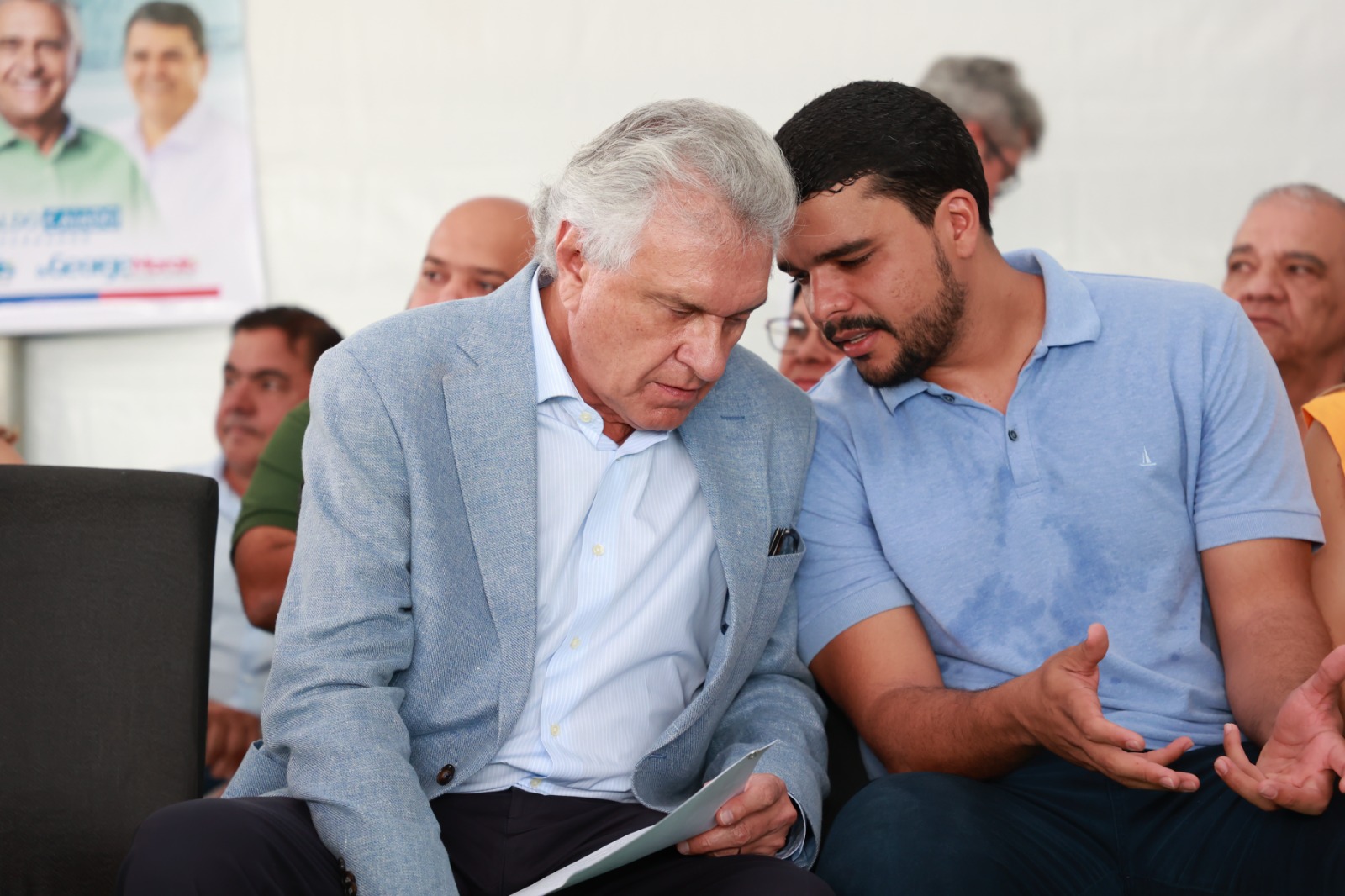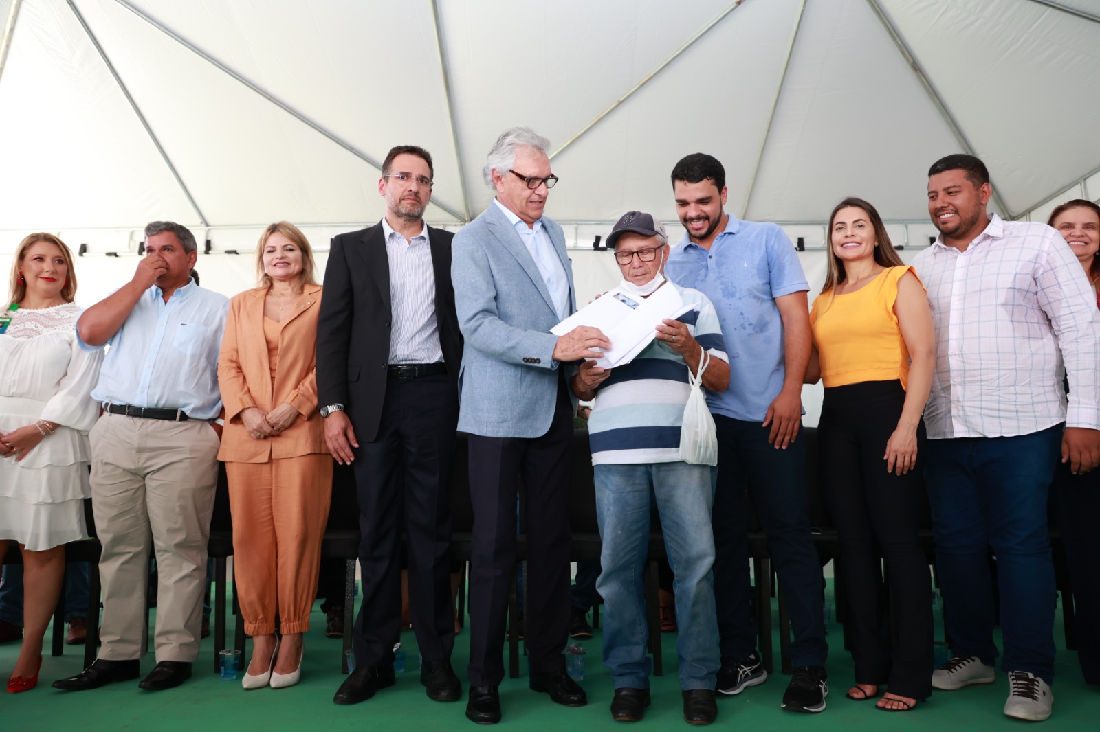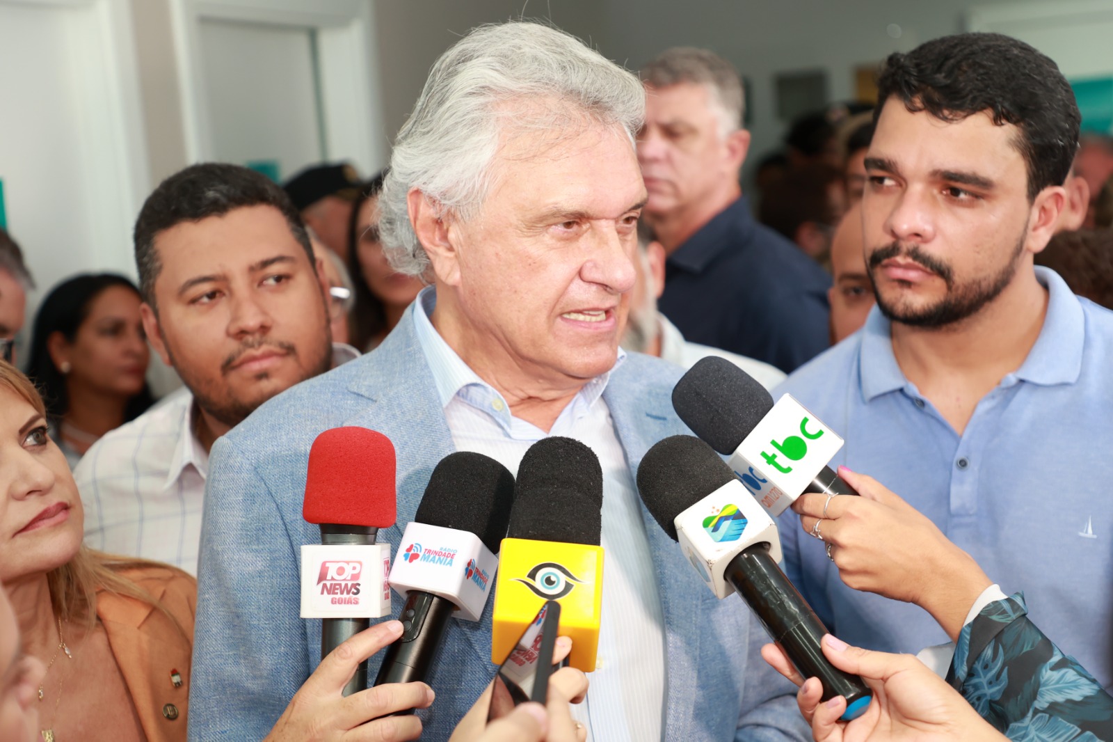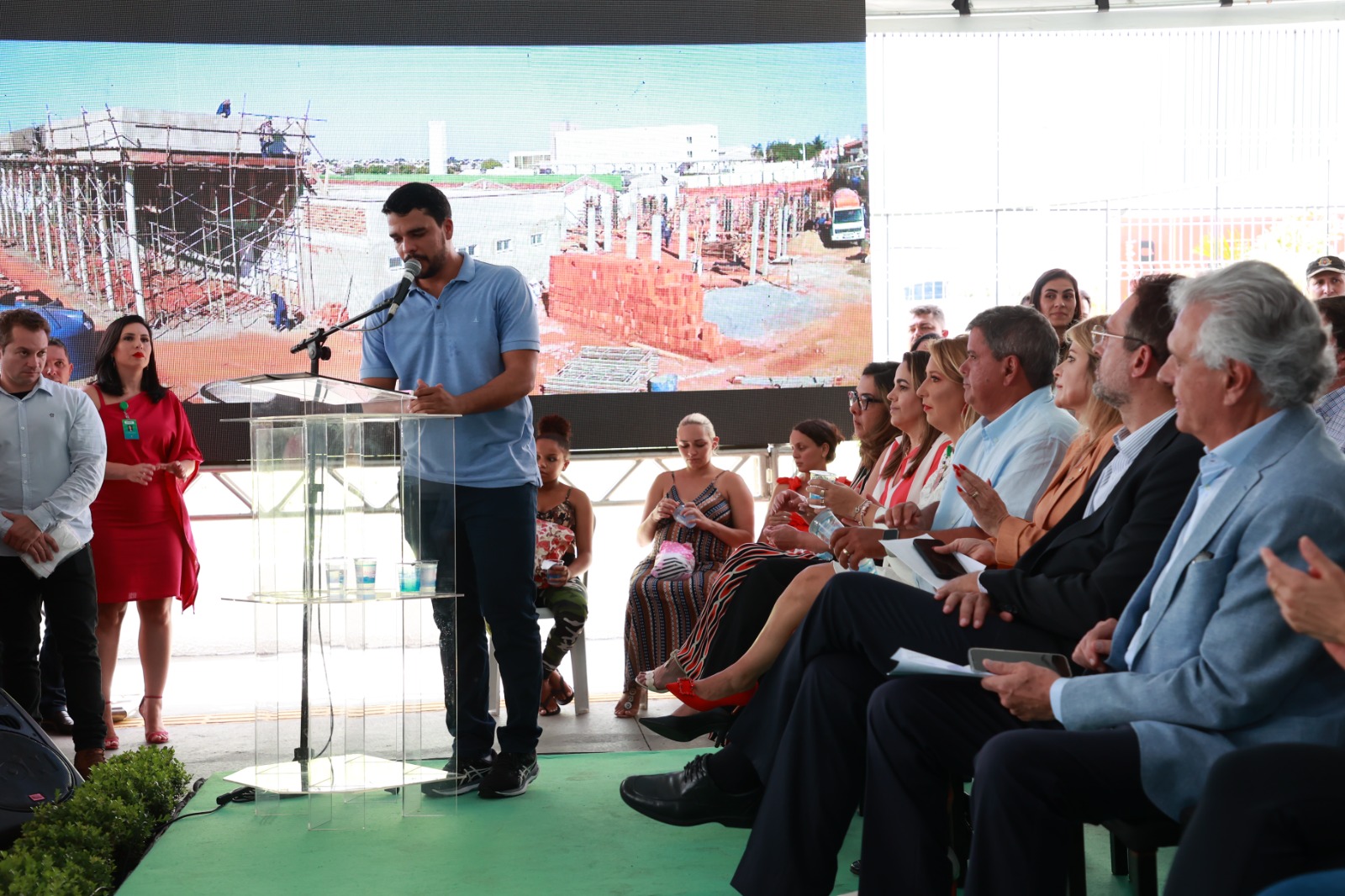 Ronaldo Caiado fez um cumprimento especial às forças políticas de Trindade presentes no evento, citando, além de Marden, seus familiares, os deputados Flávia e George Morais, o deputado estadual Cristiano Galindo e o ex-prefeito Jânio Darrot.