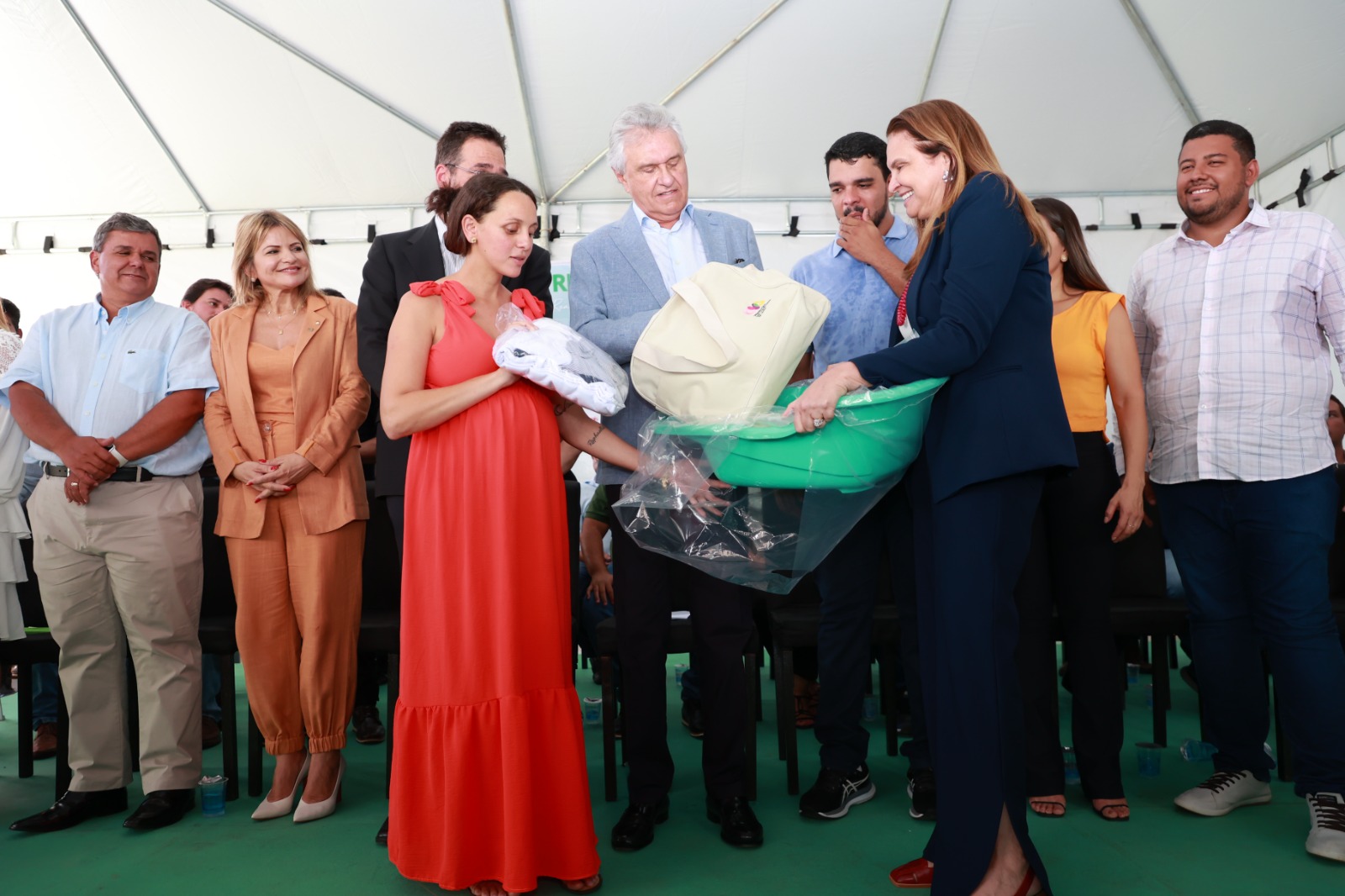 Com a presença da diretora-geral da Organização das Voluntárias de Goiás (OVG), Adriana Caiado, foram entregues kits de enxoval para mais de 150 gestantes em área junto da entrada do Hetrin.