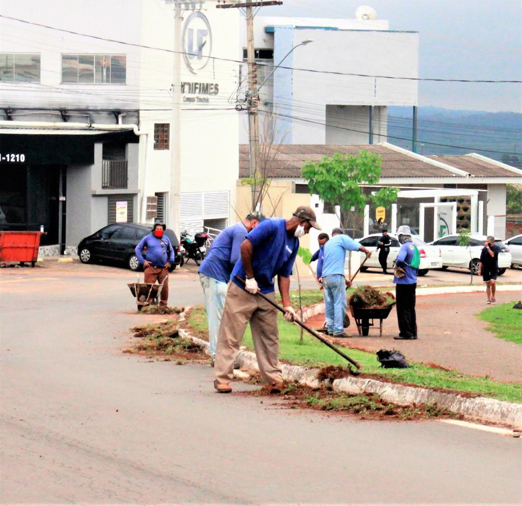 Já no Setor Maysa, as equipes de limpeza revitalizaram o meio fio, arrancando vegetação e refazendo a pintura.