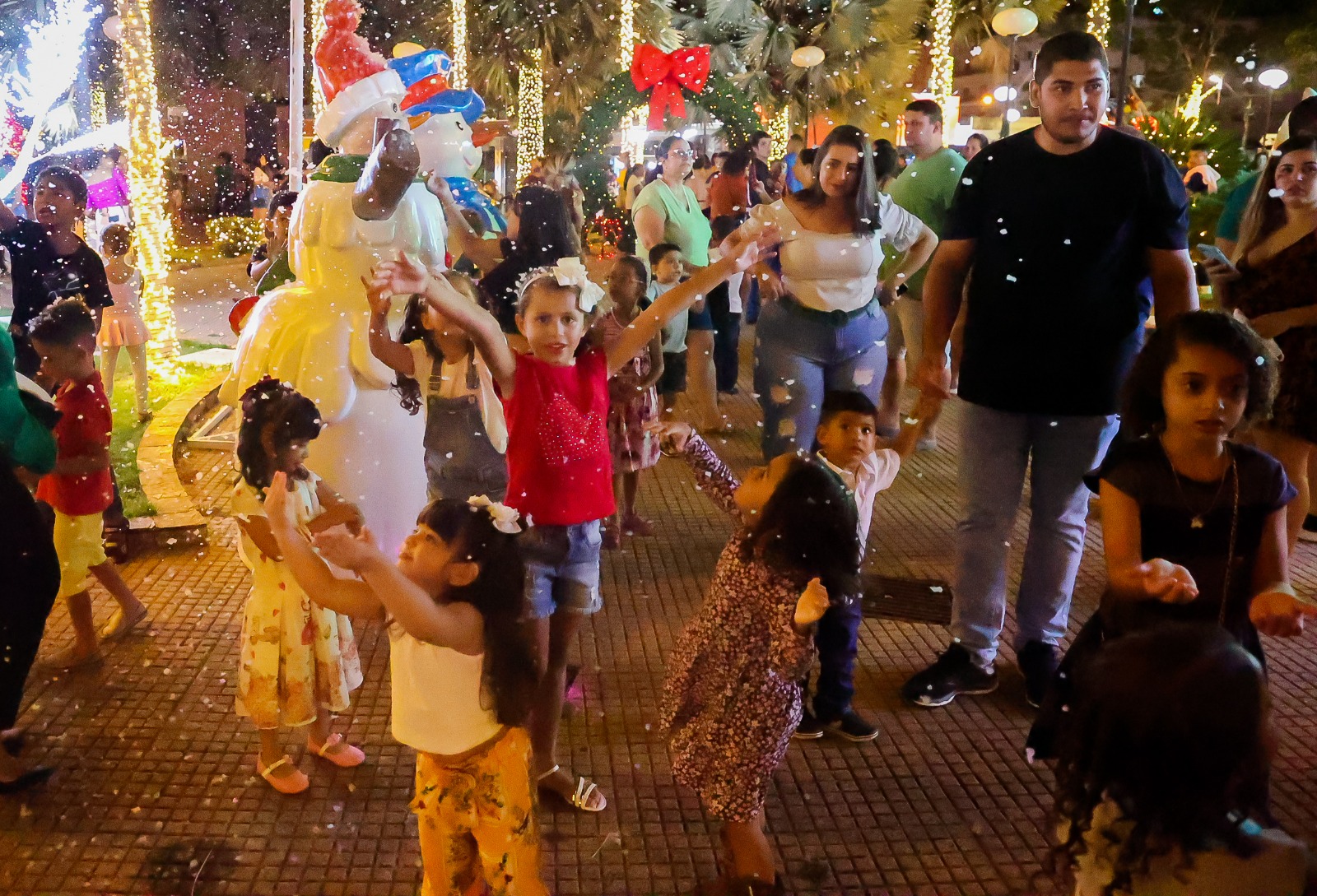A prefeitura preparou um ambiente familiar às vésperas do Natal. Milhares de pontos de luz brilharam após a contagem regressiva que iniciou a festa. Cada decoração marcou o momento, como a árvore de Natal, as bolhas de água que viraram neve, as renas, a cadeira do Papai Noel, o balão mágico e o presépio.