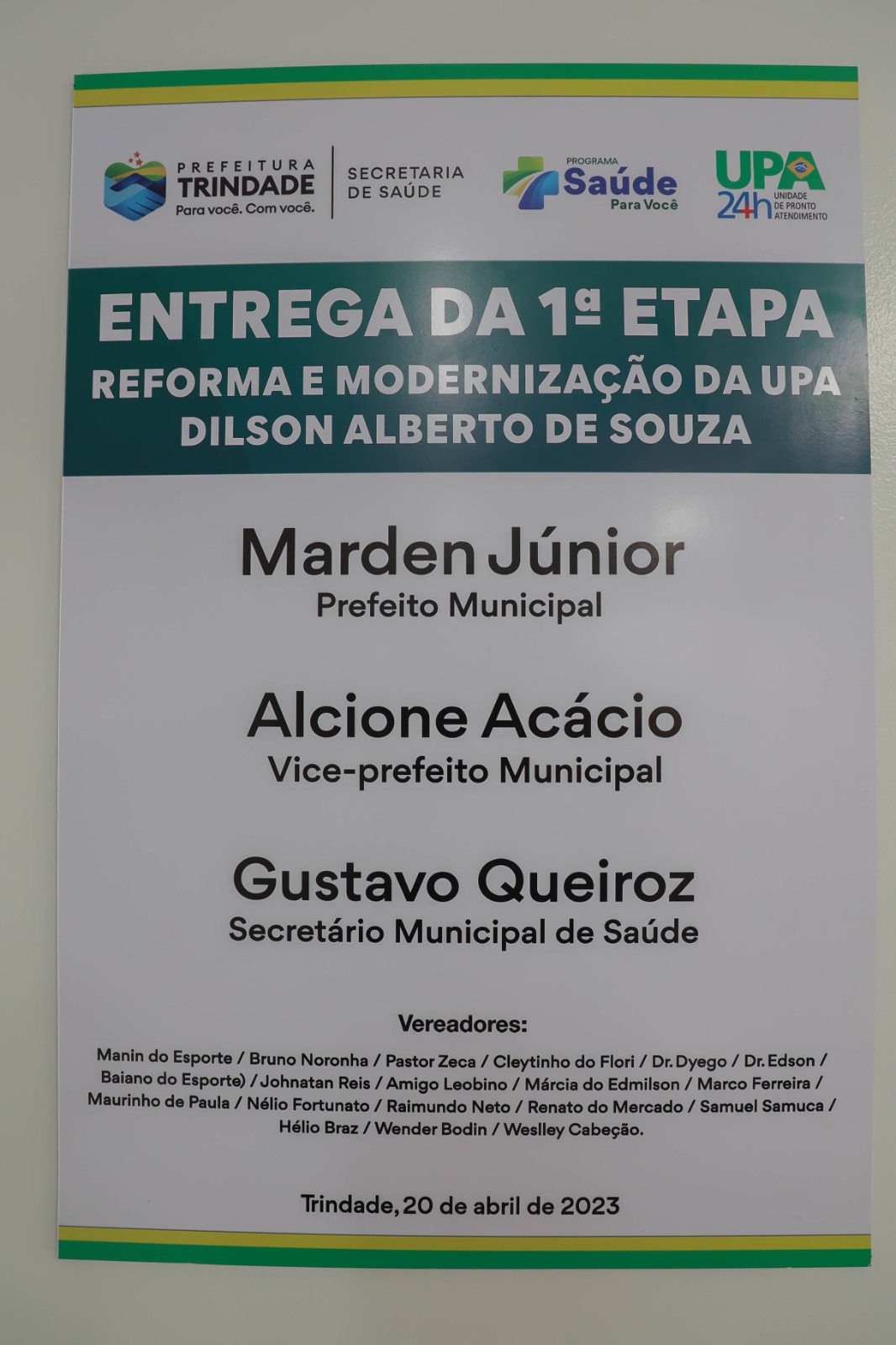 Foi entregue à população a primeira etapa da reforma e modernização da Unidade de Pronto Atendimento (UPA) Dilson Alberto de Souza, na Região Leste de Trindade, na quinta-feira (20/04).