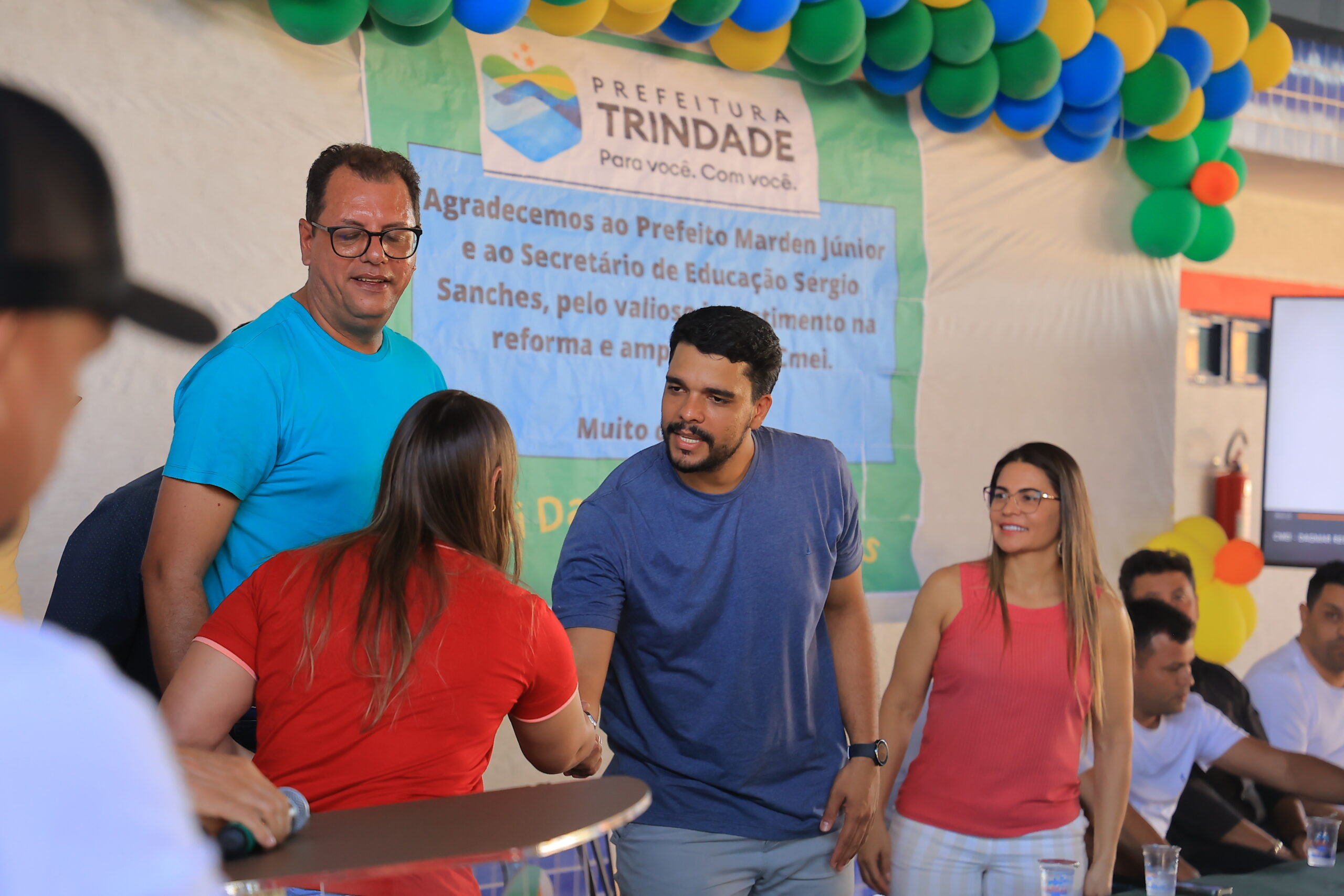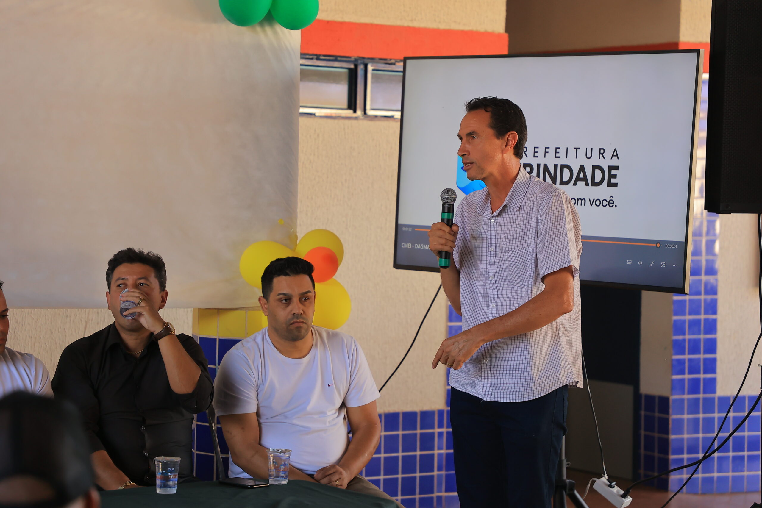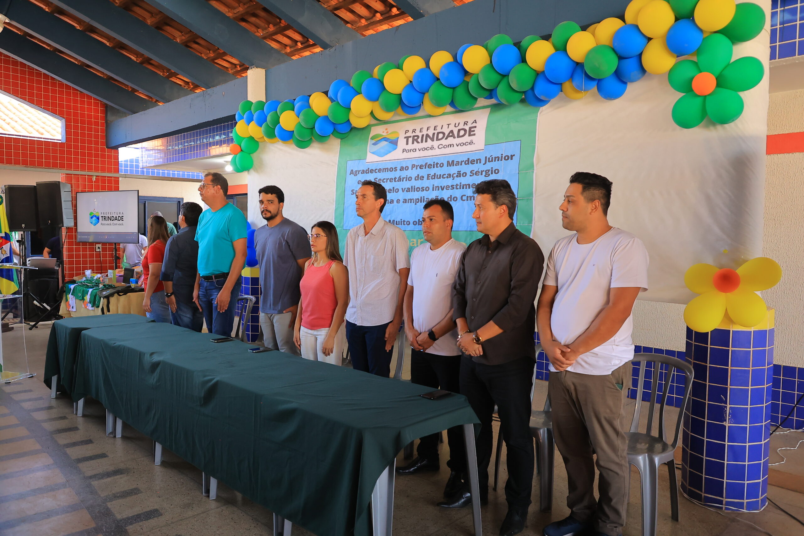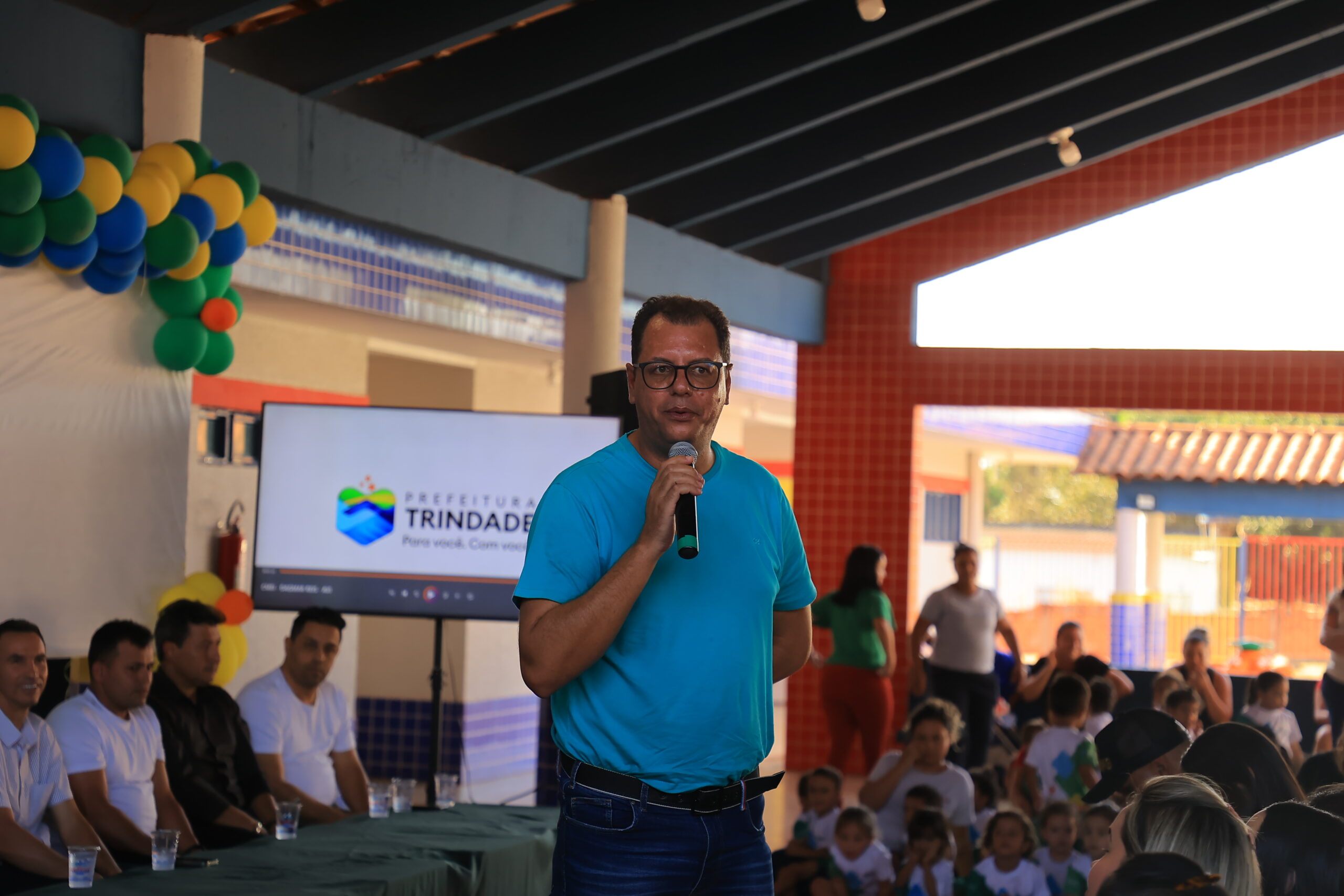 Revitalização tem investimentos da ordem de R$ 150 mil, provenientes de recursos próprios. Prefeito destaca que é o início das inaugurações escolares. Solenidade faz parte das celebrações alusivas aos 103 anos de Trindade. “É primeira unidade que entregamos após reforma e adequação. Juntos, somamos forças com a família. A gente consegue construir uma educação cada vez melhor”, pontua