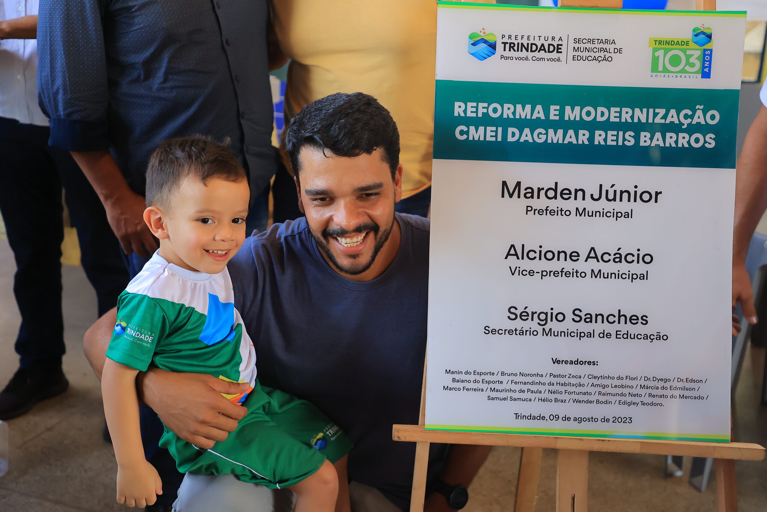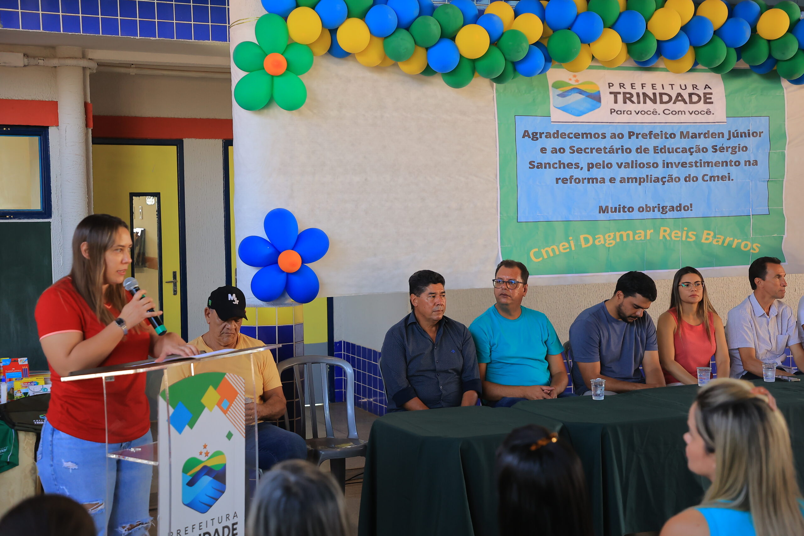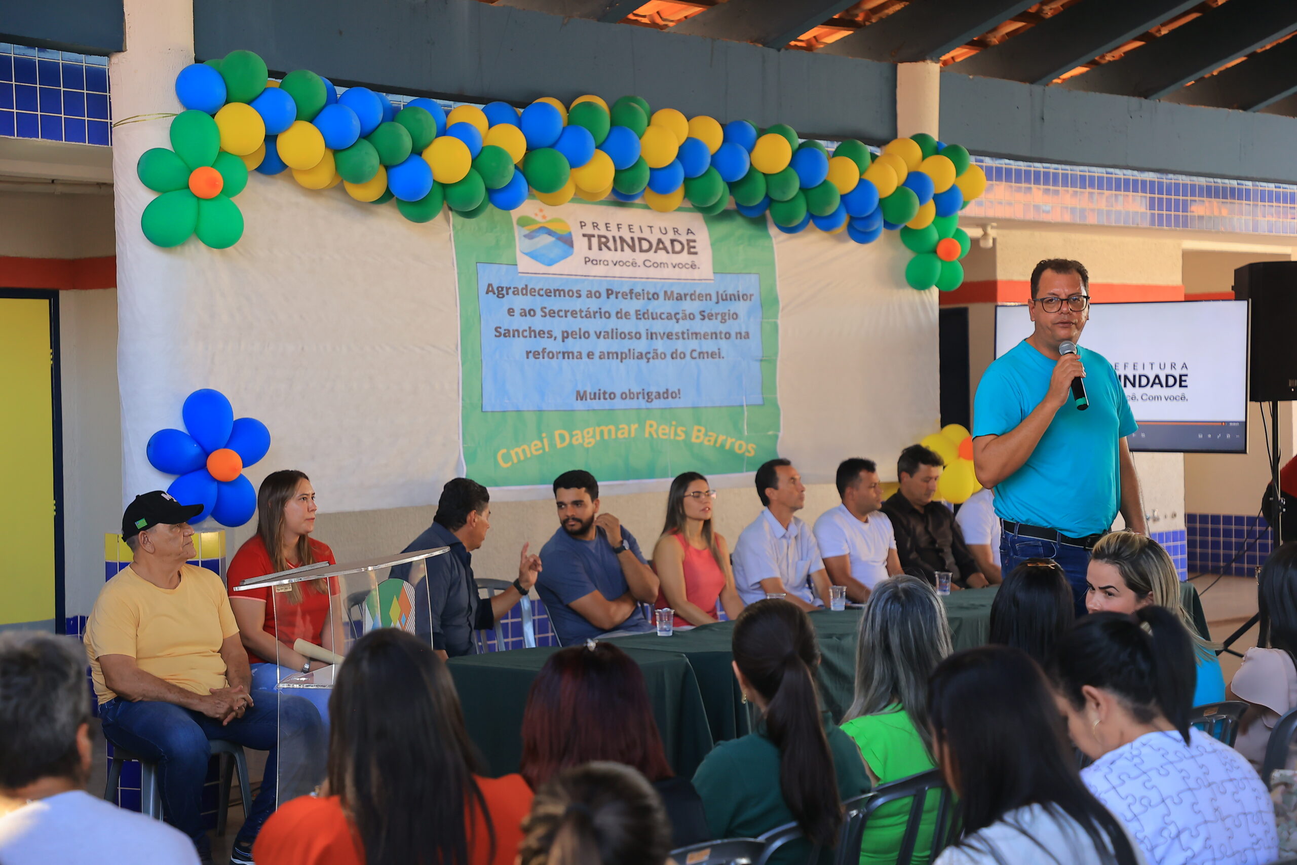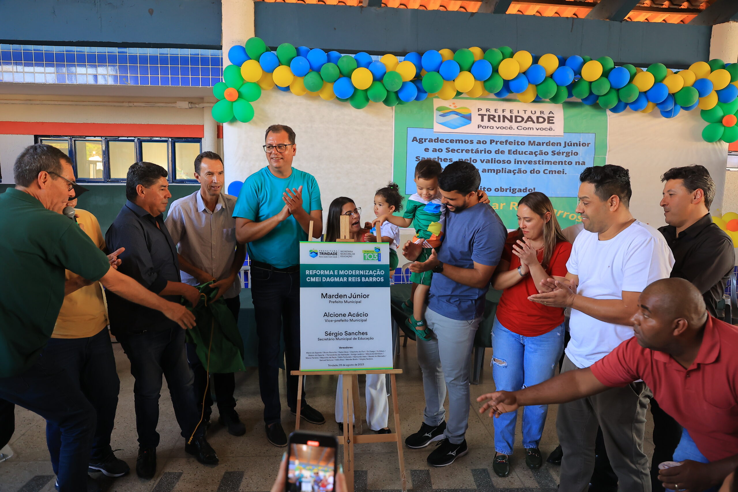 O prefeito Marden Júnior inaugurou a reforma e modernização do Centro Municipal de Educação Infantil (Cmei) Dagmar Reis de Barros, localizado no Setor Marista. A revitalização contou com investimentos da ordem de R$ 150 mil, provenientes de recursos próprios. A solenidade faz parte das celebrações alusivas aos 103 anos de Trindade.