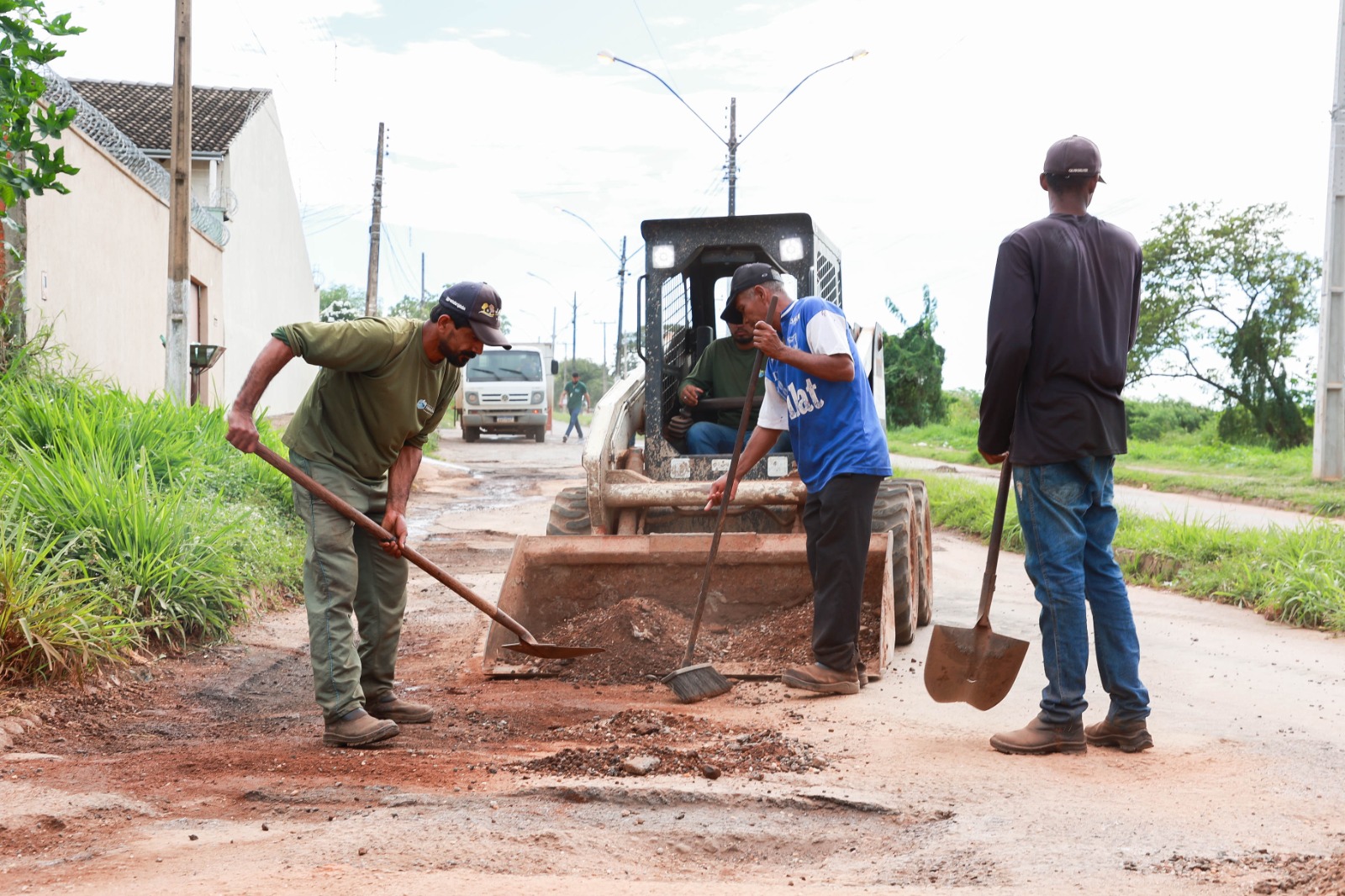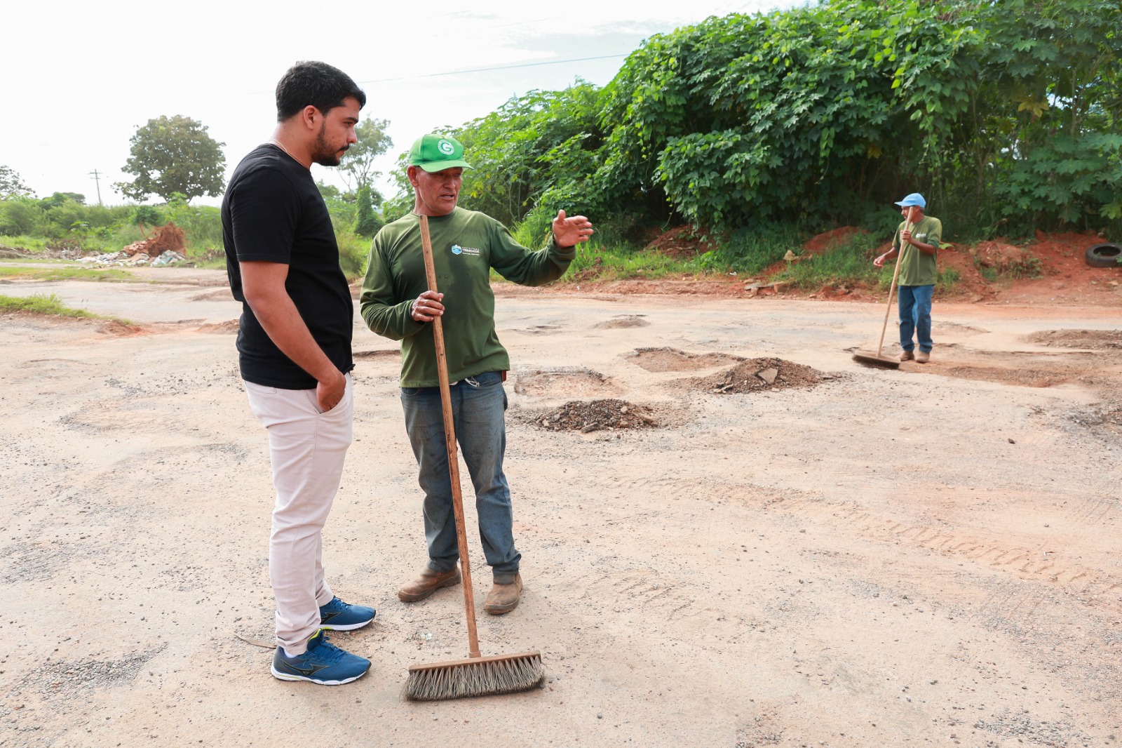 O prefeito Marden Júnior acompanhou o trabalho realizado nos bairros Laguna Parque e Guarujá Parque. No Setor Monte Sinai, vistoriou a retirada do asfalto estragado e sem condições de recuperação da Rua Otávio Luiz Pereira. No local, será feita a recuperação total da malha viária.
