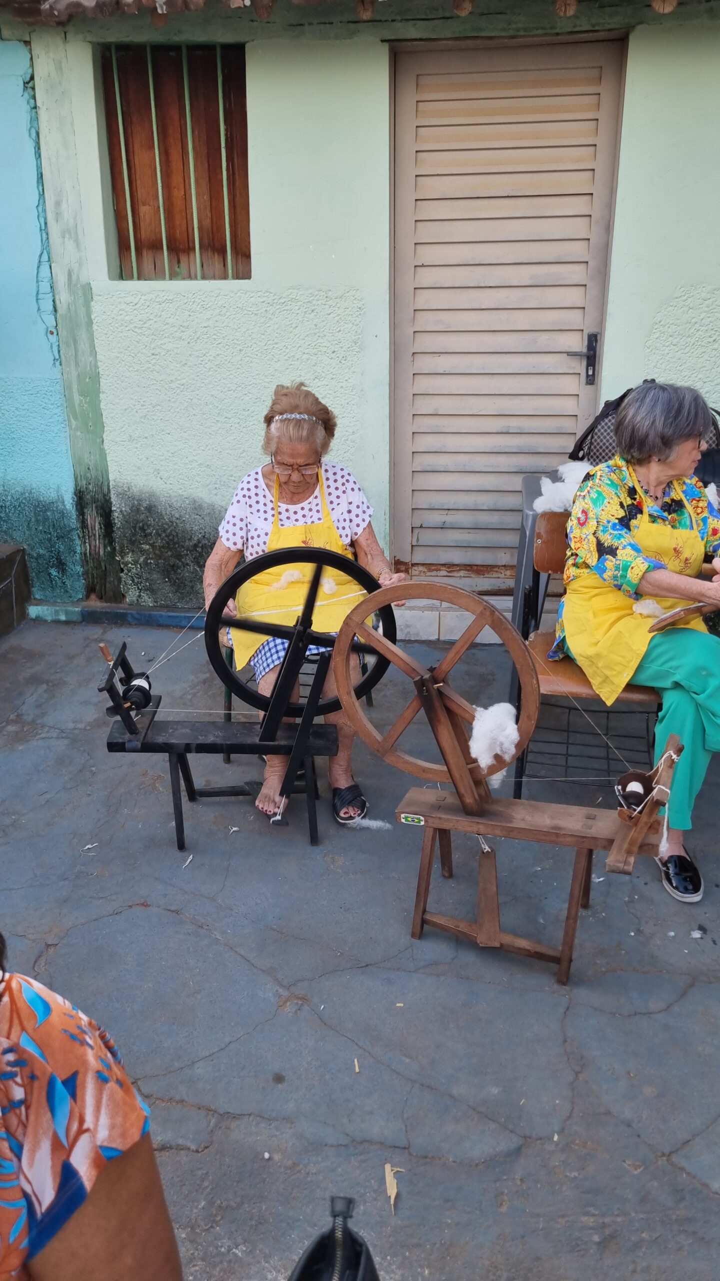“Aprendi a fiar aos 5 anos com minha avó. Minha filha aprendeu, e agora a neta também abraça a tradição,” afirma Elza Jesus. Maria Albina, que recentemente adotou a arte, integra o grupo de Trindade “União dos Velhos Amigos” (UVA). Ela adquiriu as habilidades de fiandeira e compartilha que “esse trabalho é belo e maravilhoso. Continuarei o máximo que puder”.