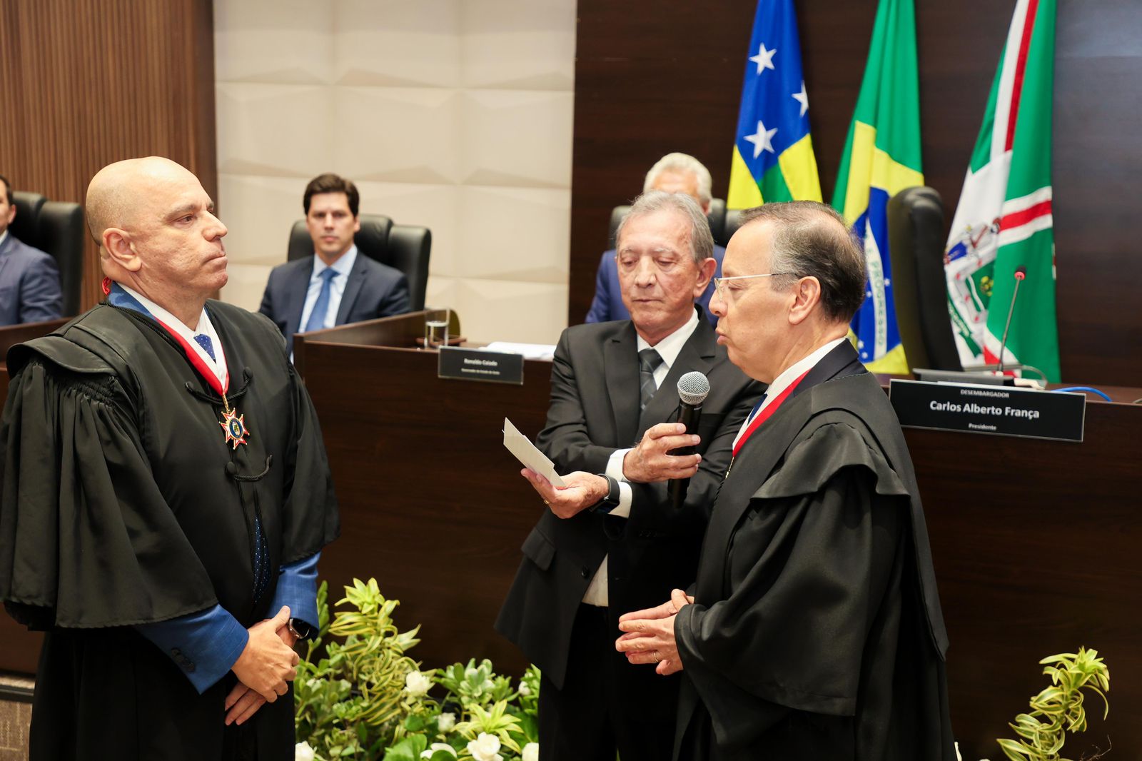 O Prefeito de Trindade, Marden, acompanhado do deputado estadual Cristiano Galindo e da Procuradora Geral do Município, Dra. Néli Cárita Máximo Figuerêdo, participou na noite da última segunda-feira (03/02) da solenidade de posse do desembargador Leandro Crispim como novo presidente do Tribunal de Justiça do Estado de Goiás (TJGO). O evento aconteceu no plenário do Tribunal de Justiça, em Goiânia, e contou com a presença de diversas autoridades, incluindo o governador de Goiás Ronaldo Caiado e o vice-governador Daniel Vilela.