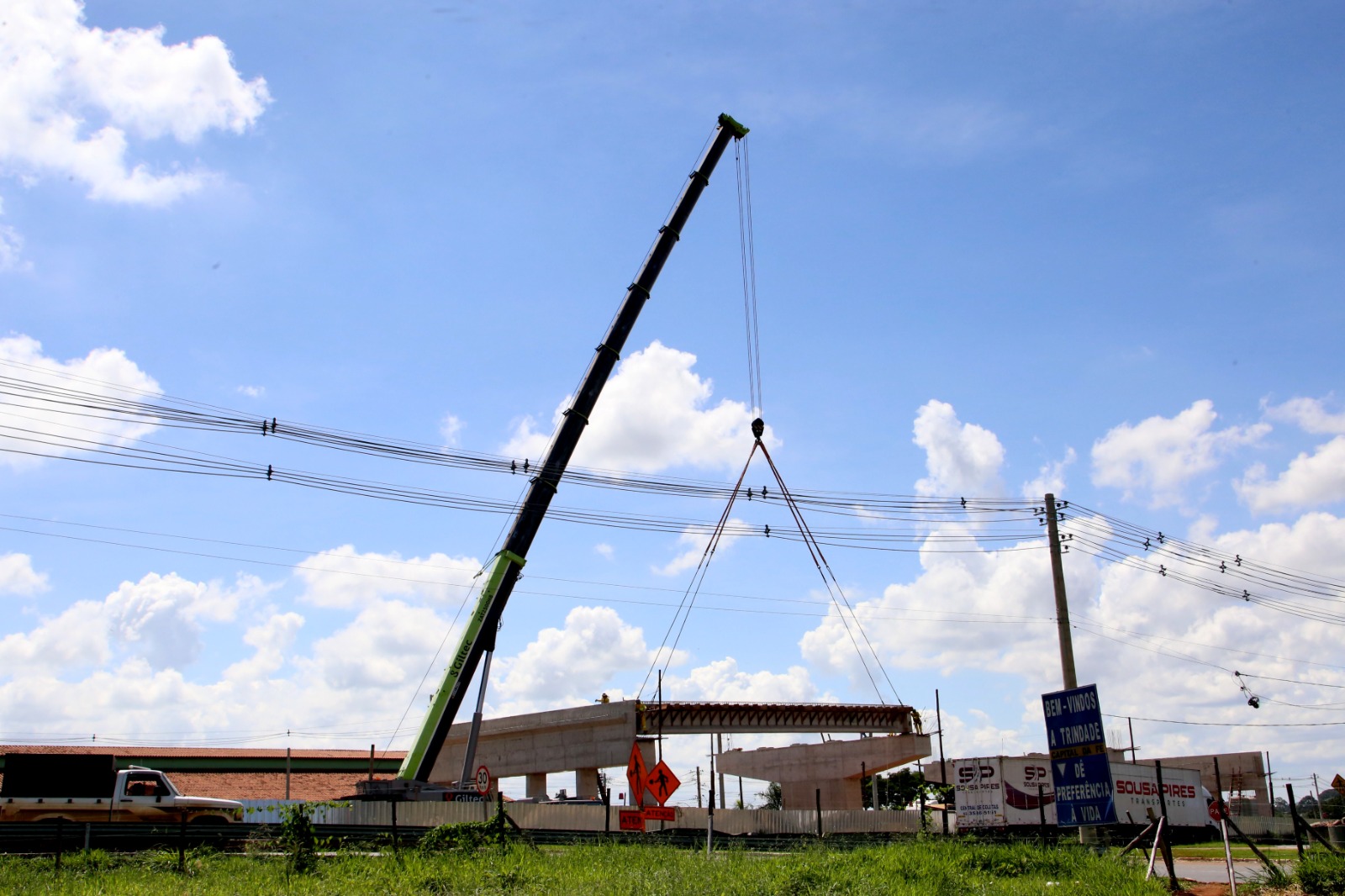 Vigas de sustentação do viaduto serão instaladas até domingo (21/04), com interdição parcial de trecho da GO-060. Município prevê também outras obras que proporcionarão melhorias ao serviço público e à população