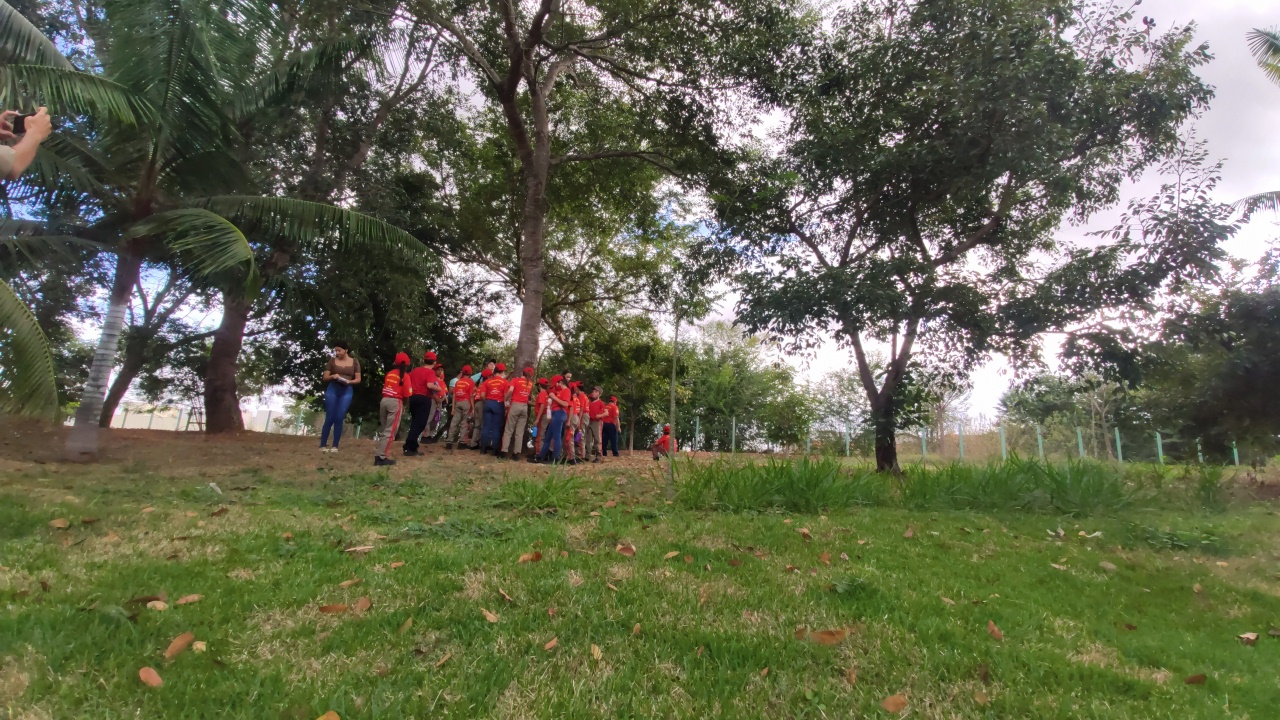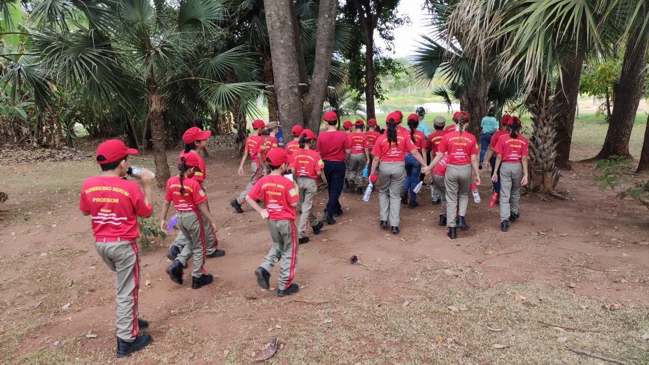 Em evento no Parque Maria Pires Perillo, 23 bombeiros mirins, do 1º Batalhão do Corpo de Bombeiros Militar, vieram de Goiânia ter uma aula de educação ambiental, em Trindade.
