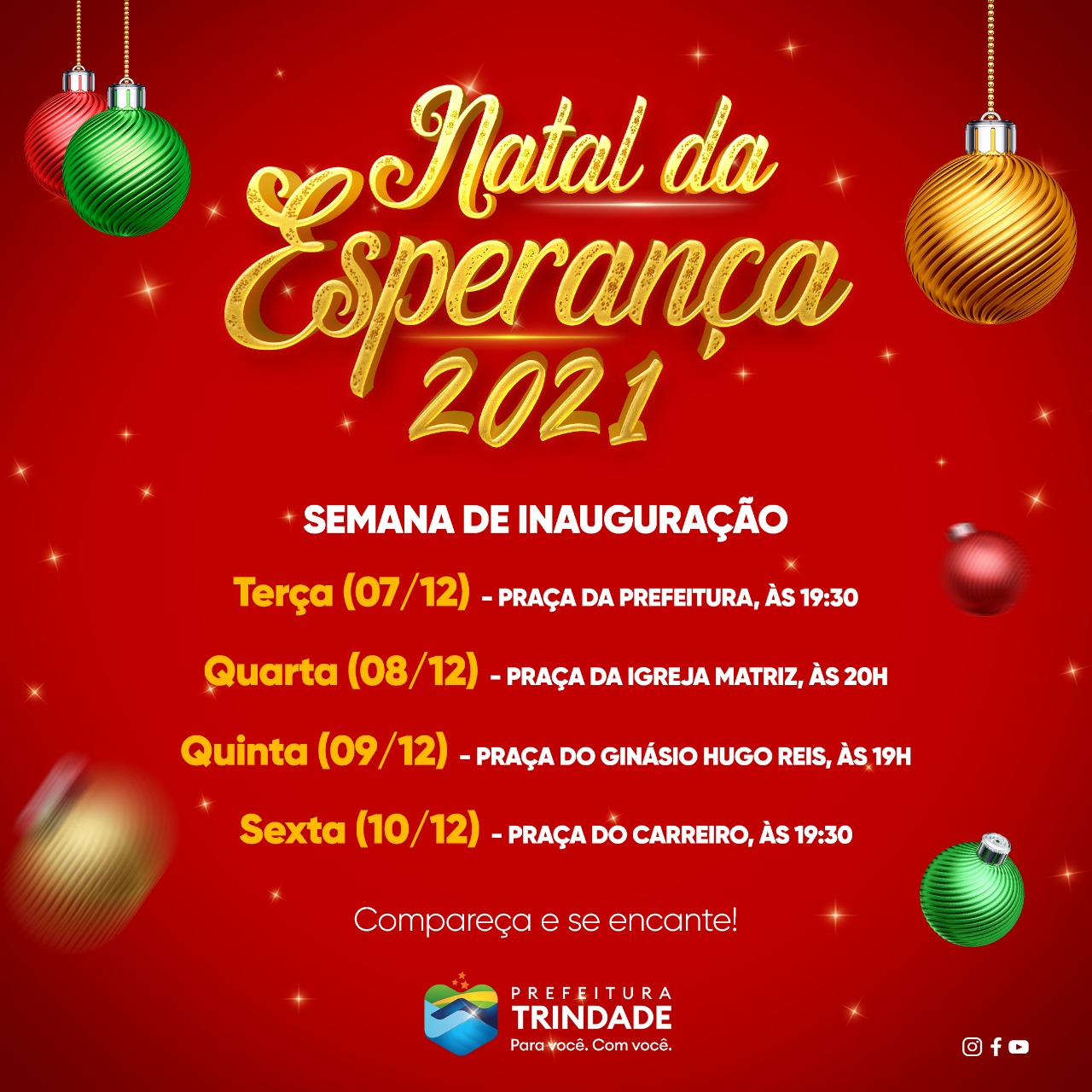 O prefeito de Trindade, Marden Júnior, acompanhado de várias autoridades, deu início às festividades oficiais de fim de ano no município na noite de terça-feira (08/12), abrindo o Natal da Esperança 2021. As luzes natalinas foram acesas na Praça Constantino Xavier, antiga Prefeitura, com queima de fogos. Nesta quarta, 20h, o mesmo vai ocorrer na Praça da Matriz.