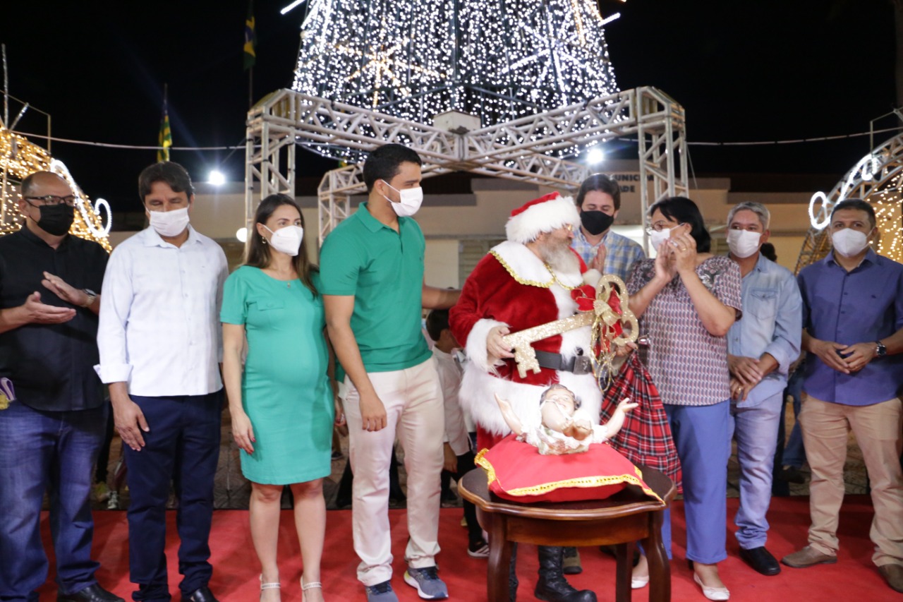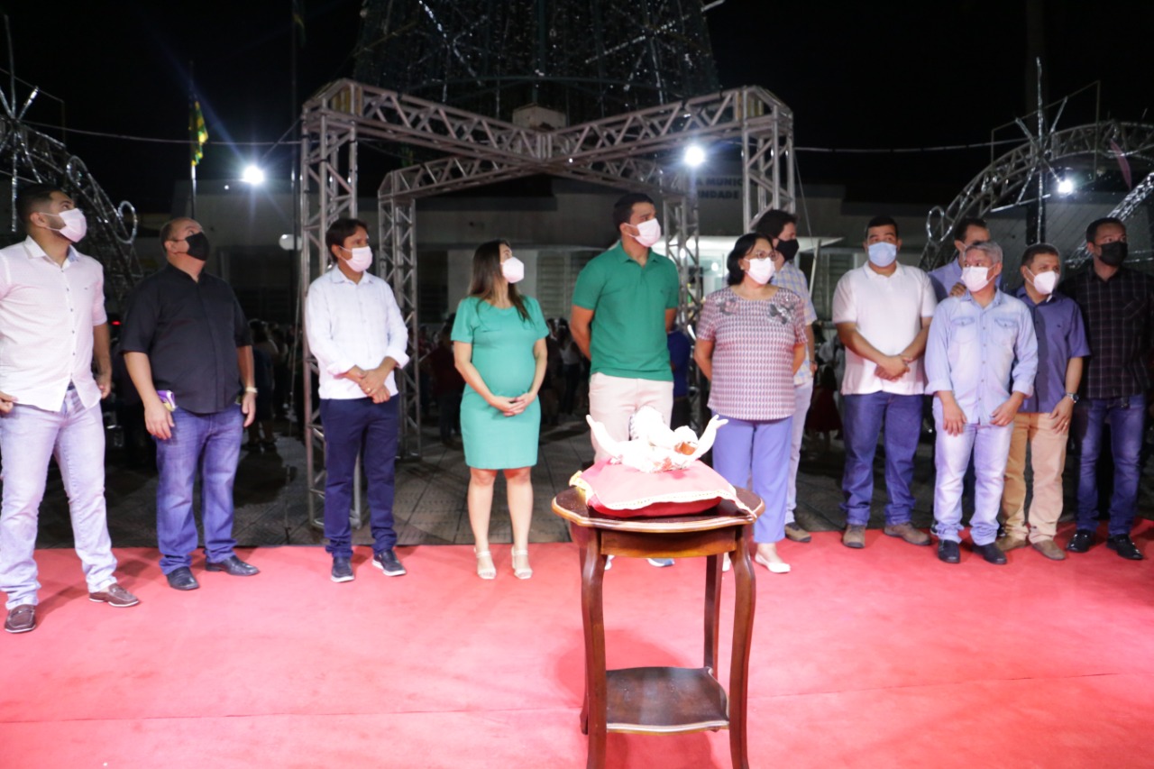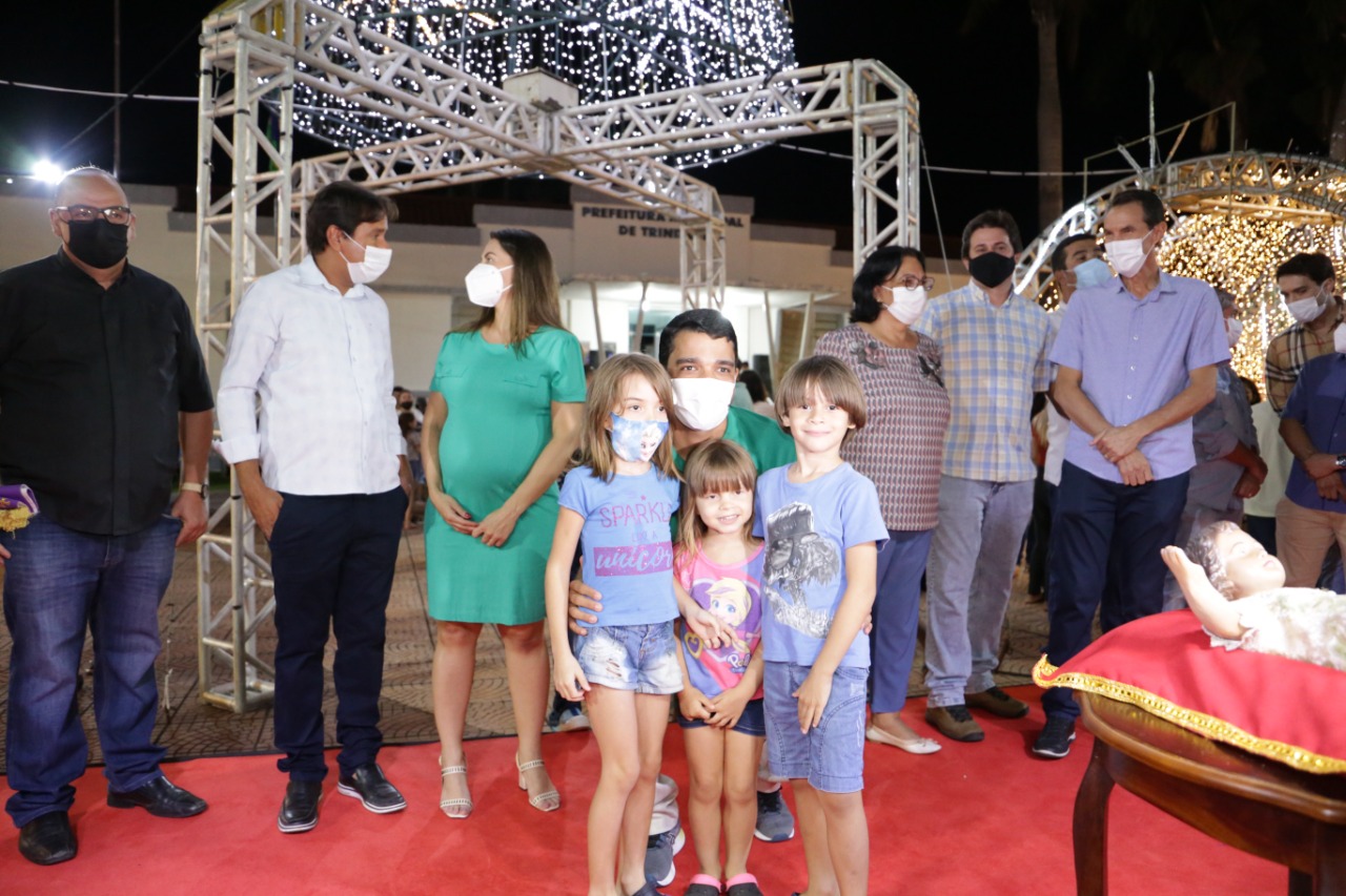 Marden Júnior entregou a chave da cidade para o Papai Noel. Ao lado da Primeira-Dama de Trindade, e mãe dele, dona Dorinha, o prefeito participou de um dos momentos altos da celebração, levando a imagem do Menino Jesus até a Manjedoura.