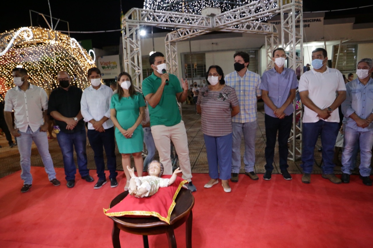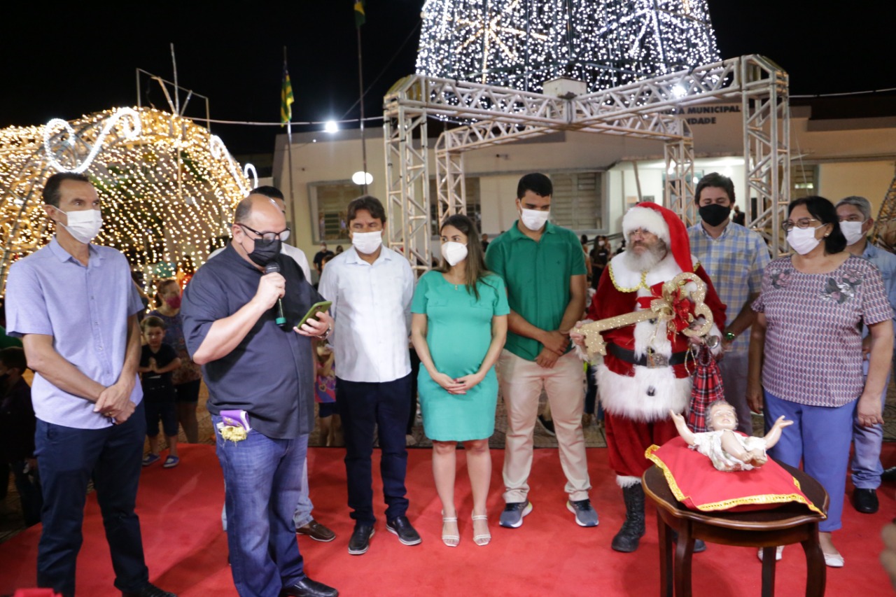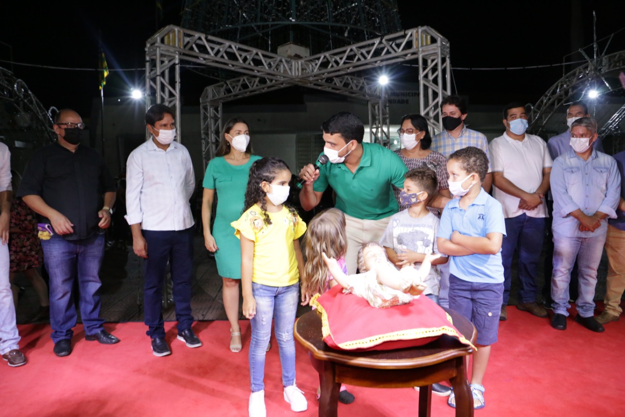 Marden Júnior entregou a chave da cidade para o Papai Noel. Ao lado da Primeira-Dama de Trindade, e mãe dele, dona Dorinha, o prefeito participou de um dos momentos altos da celebração, levando a imagem do Menino Jesus até a Manjedoura.