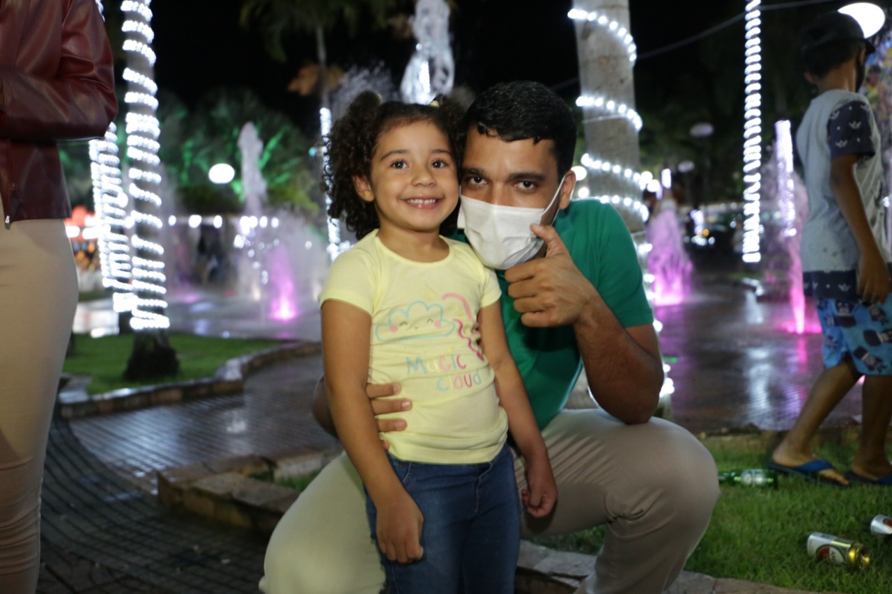 Foi distribuído algodão doce e pipoca e montadas barracas de brinquedos e alimentação na Praça, onde a iluminação da fonte d’água foi ligada. A menina Beatriz Vitória Lopes, 10 anos, e o garoto Marcos Rogério Brandão, de 11, como outras crianças que participaram, estavam encantados com o evento.