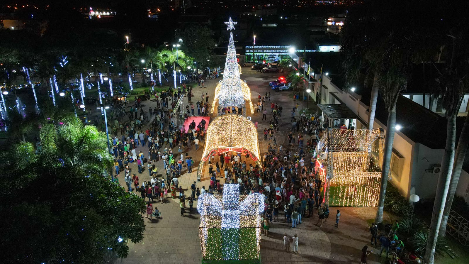“Que seja um ano melhor para cada família trindadense, a quem desejo um Feliz Natal”, afirmou Marden Júnior ao abrir festejos natalinos em Trindade com fogos e luzes na Praça da antiga prefeitura. Inaugurações se repetirão até sexta-feira em mais três pontos, oferecendo imagens e atrações de Natal acessíveis para a população da cidade também pelas redes sociais, onde serão transmitidas