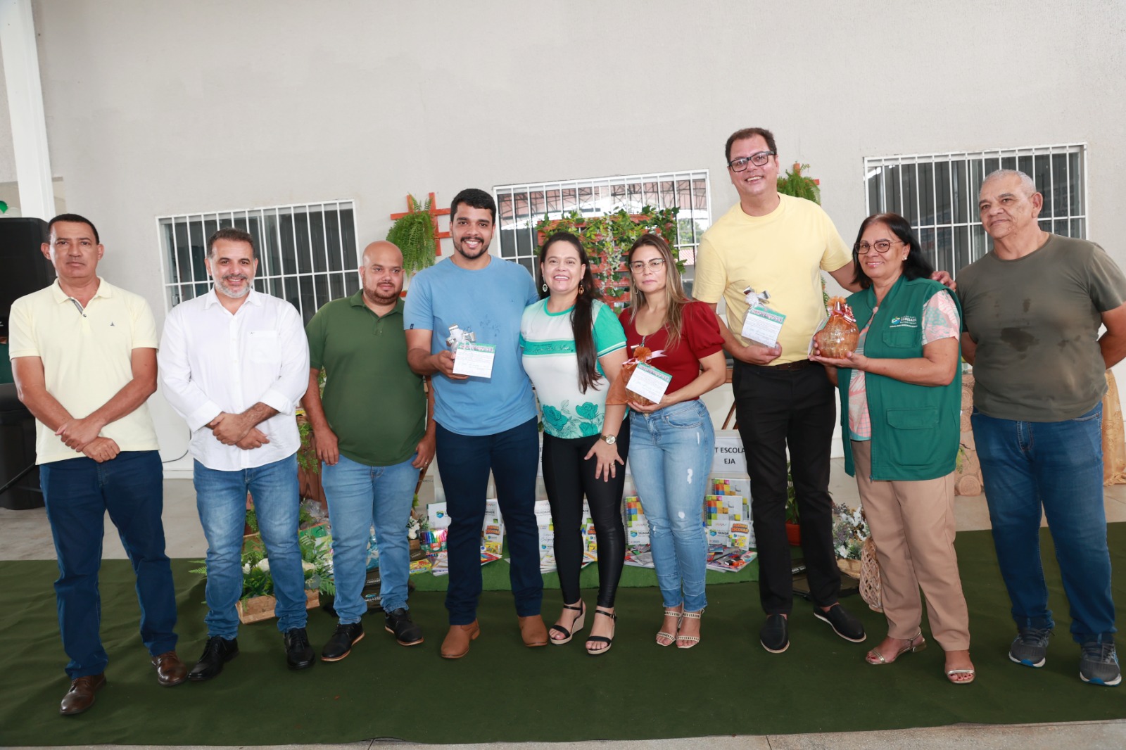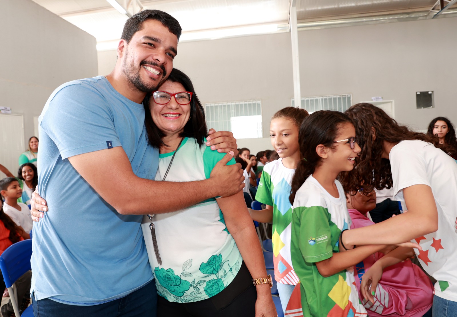 Ao lado da madrinha da educação, Rouane Azevedo, Marden Júnior assistiu curtas apresentações culturais, “mas tudo preparado com muita atenção e carinho”, afirma.