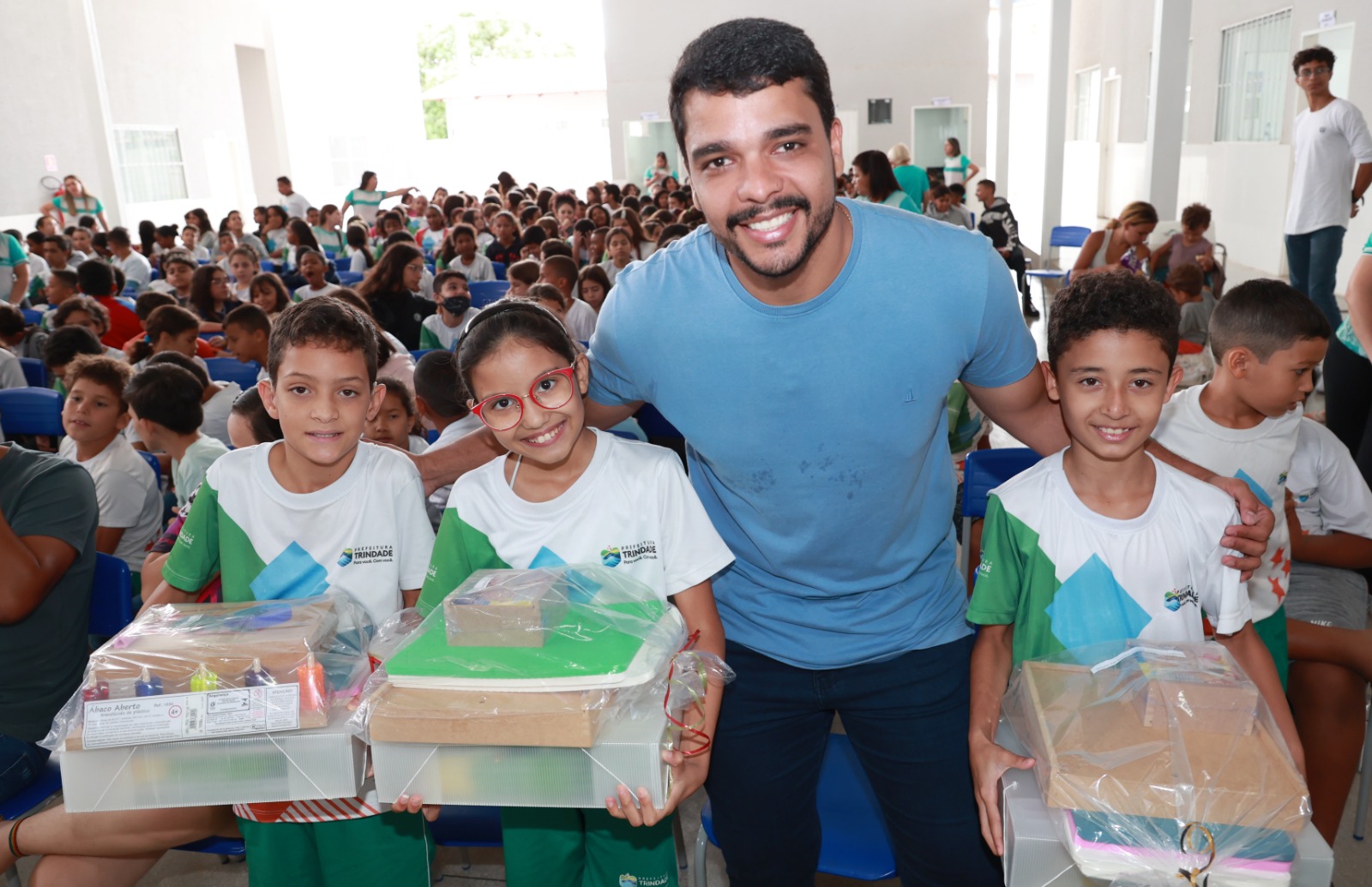 “Essas entregas representam investimento no processo de aprendizagem e, mais que isso, inclusão social. Nem todas as famílias têm condições de adquirir os materiais. Aqui, no ensino fundamental de Trindade, todos alunos são iguais e possuem materiais de qualidade para que possam construir um futuro brilhante”, afirma Sérgio Sanches.
