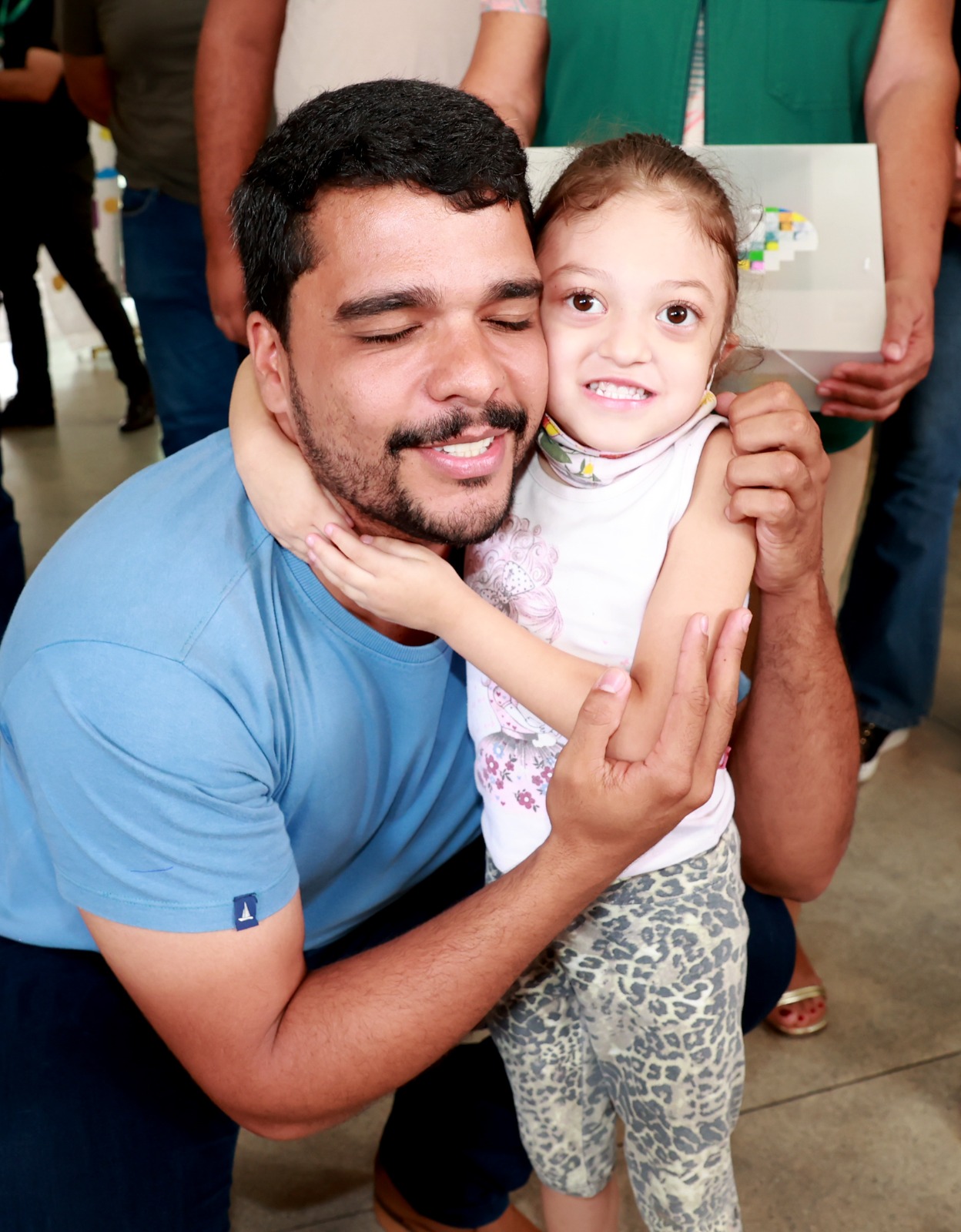 Pais de alunos acompanharam a entrega dos materiais escolares. Moradora do Setor São Bernardo, Kênia afirma que “na época que estudei não tinha nada disso, e era muito difícil. Hoje é diferente. Vejo meu filho se desenvolver com mais facilidade com todo o material que é entregue pela prefeitura”.