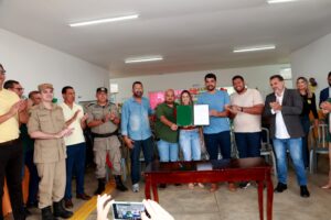 Os vereadores Manin do Esporte, Jhonatan Reis, Hélio Braz, Baiano do Esporte e Dr. Edson Cândido participaram das entregas dos materiais.