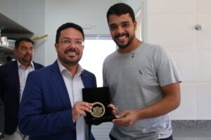 O presidente do FNDE recebeu do prefeito uma medalha alusiva ao aniversário da cidade e um kit com modelos do uniforme escolar distribuído este ano na rede municipal, de alta qualidade.