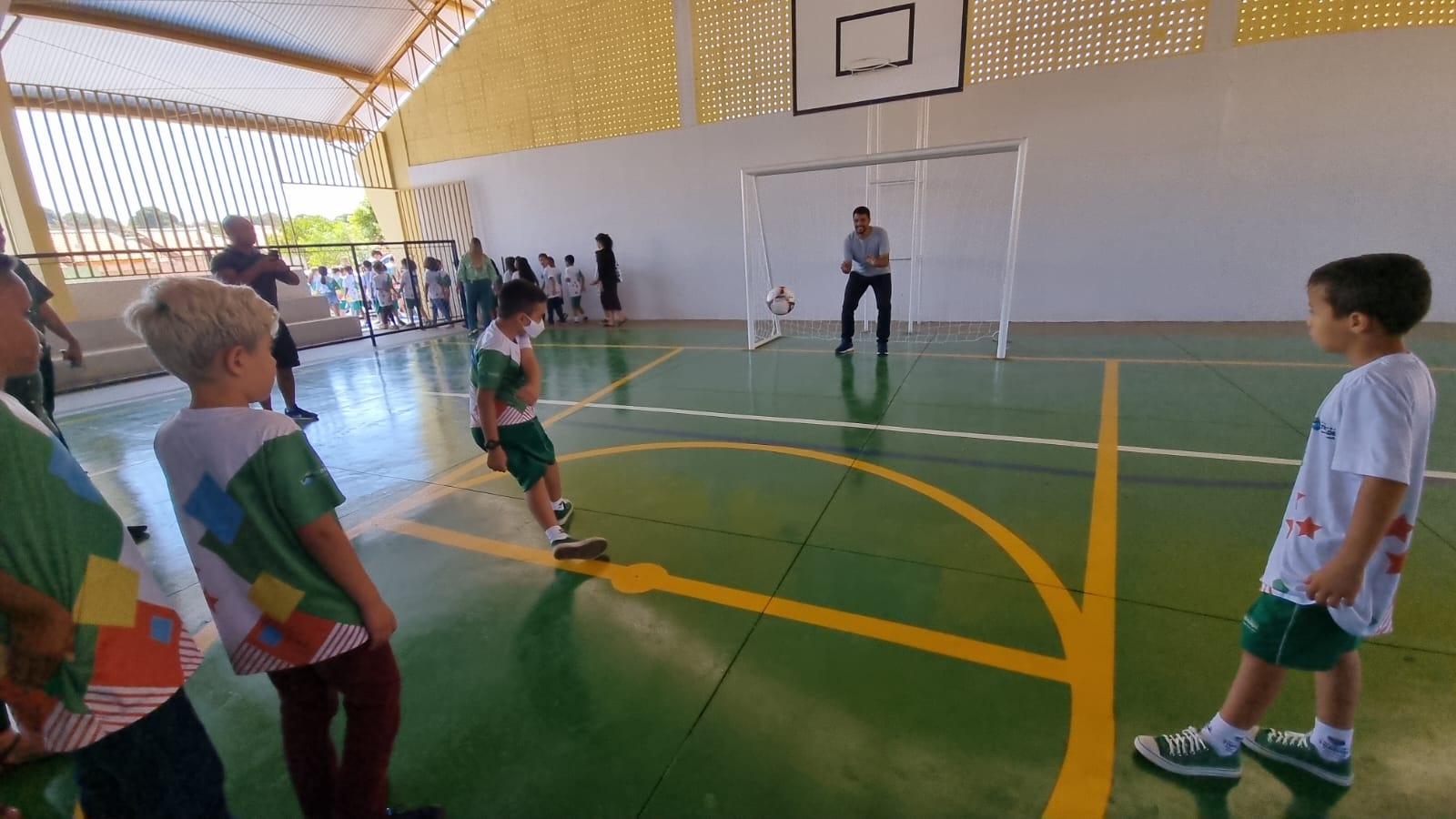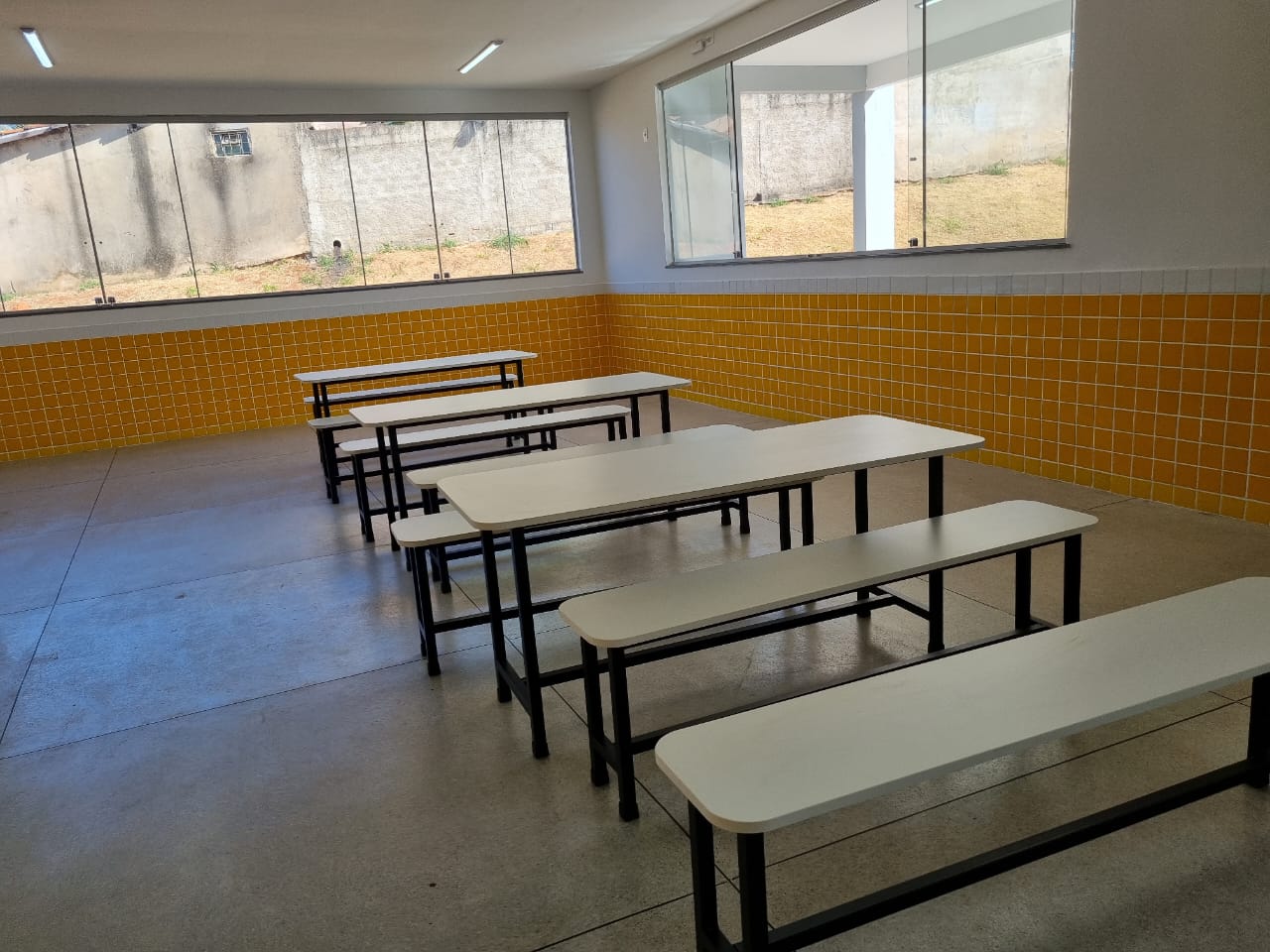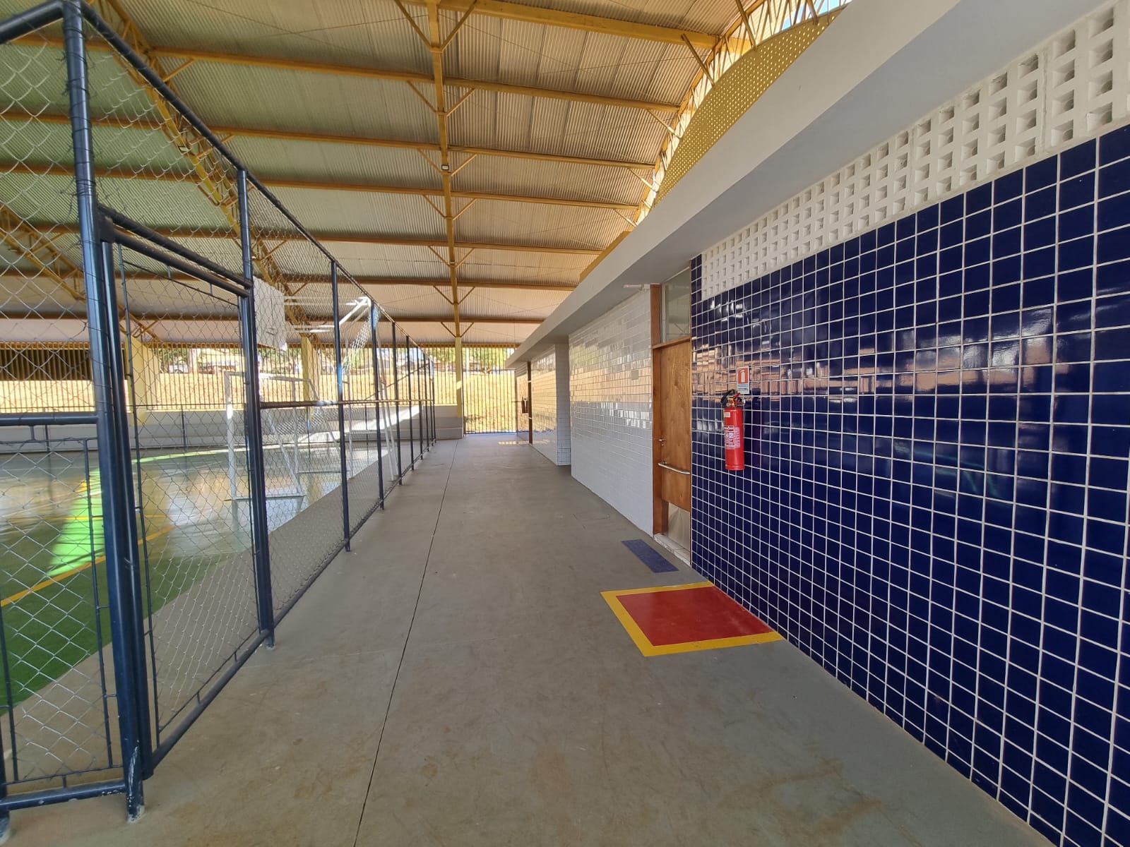 O espaço conta com estacionamento, vestiários, cobertura e área total de 980,40 metros quadrados. Recebeu mais de meio milhão de reais do FNDE e antecipações da Prefeitura.