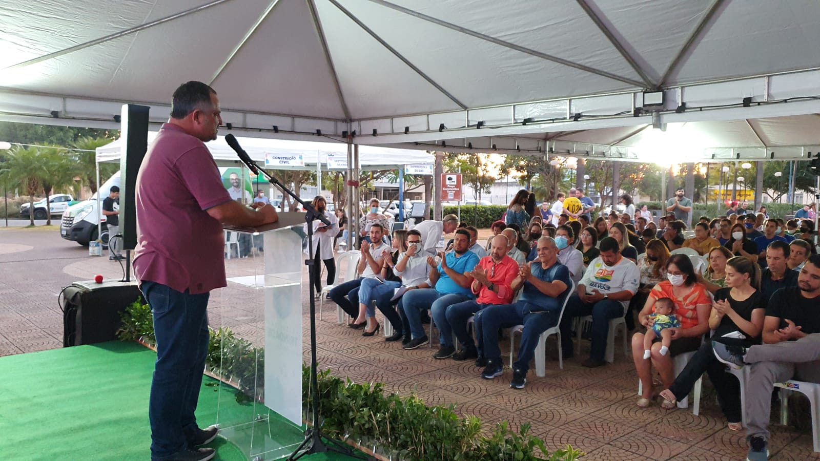 Os pais do prefeito, a Primeira-Dama de Trindade, dona Dorinha, e o senhor Marden Aguiar, participaram do evento, assim como o filho do prefeito, José Gabriel, no colo da mãe, a Madrinha da Educação, Rouane Azevedo. Também foi registrada a presença do comunicador Luís Carlos Pimenta.