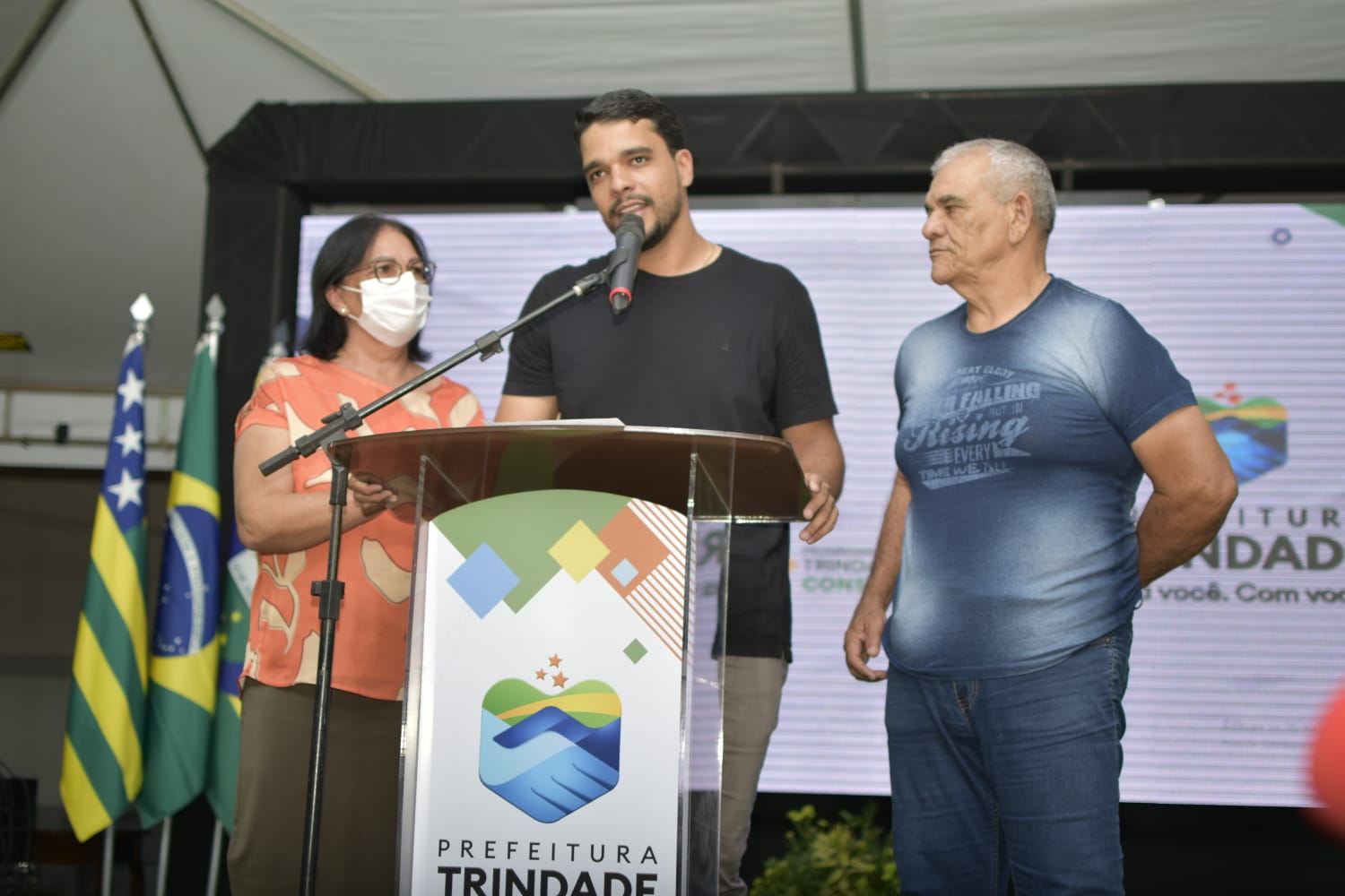 Os pais do prefeito, a Primeira-Dama de Trindade, dona Dorinha, e o senhor Marden Aguiar, participaram do evento, assim como o filho do prefeito, José Gabriel, no colo da mãe, a Madrinha da Educação, Rouane Azevedo. Também foi registrada a presença do comunicador Luís Carlos Pimenta.