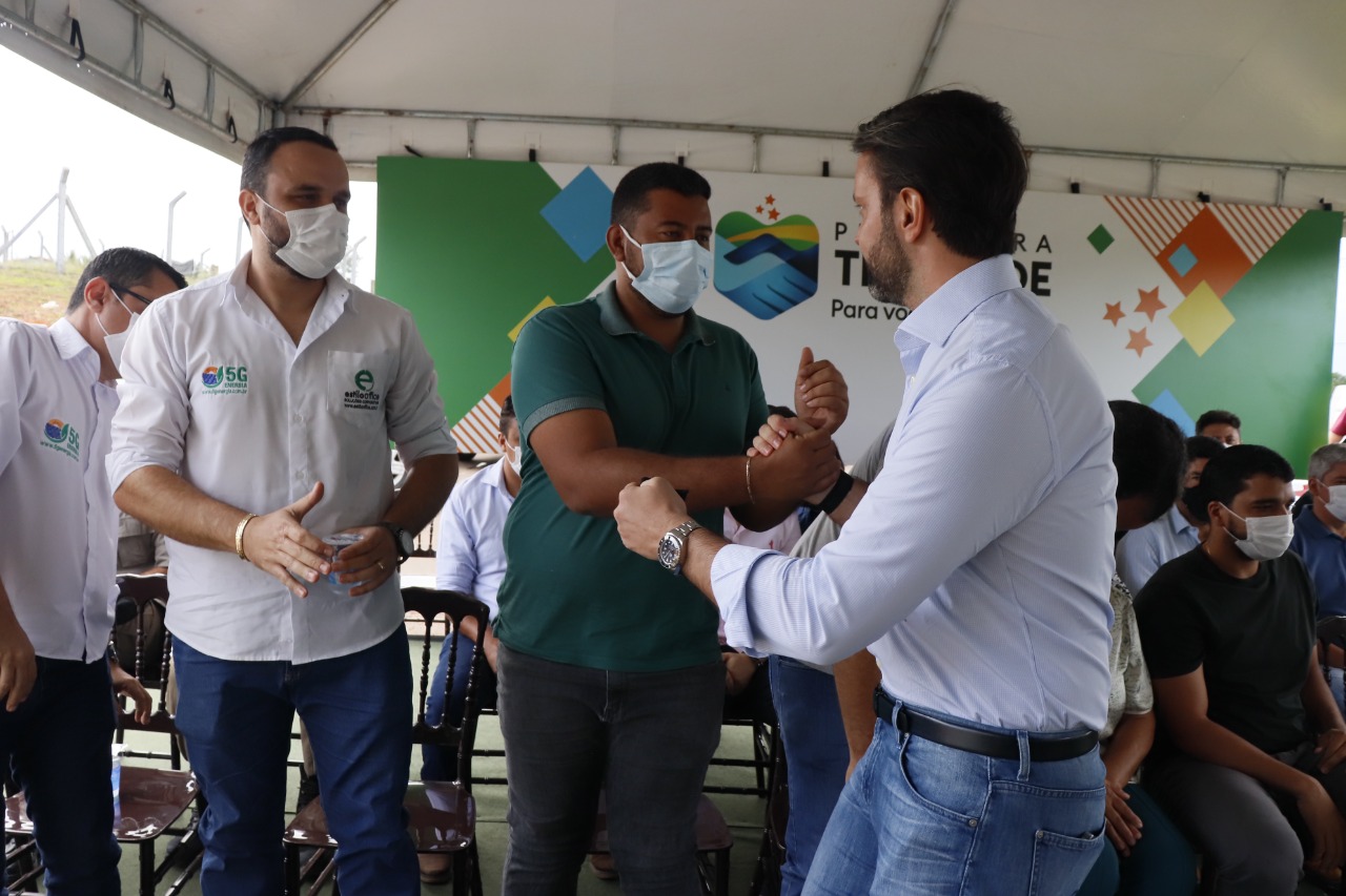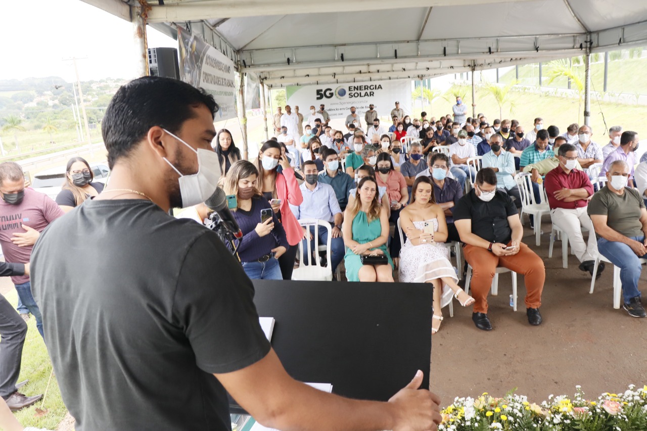 O prefeito de Trindade, Marden Júnior, acompanhado dos secretários estadual e municipal da Indústria, Comércio e Serviços, respectivamente, Joel Sant´Anna Braga e Gustavo Queiróz, prestigiou nesta segunda-feira (14/03), a inauguração das instalações da 5G Energia Solar no município, junto com várias autoridades estaduais e locais.