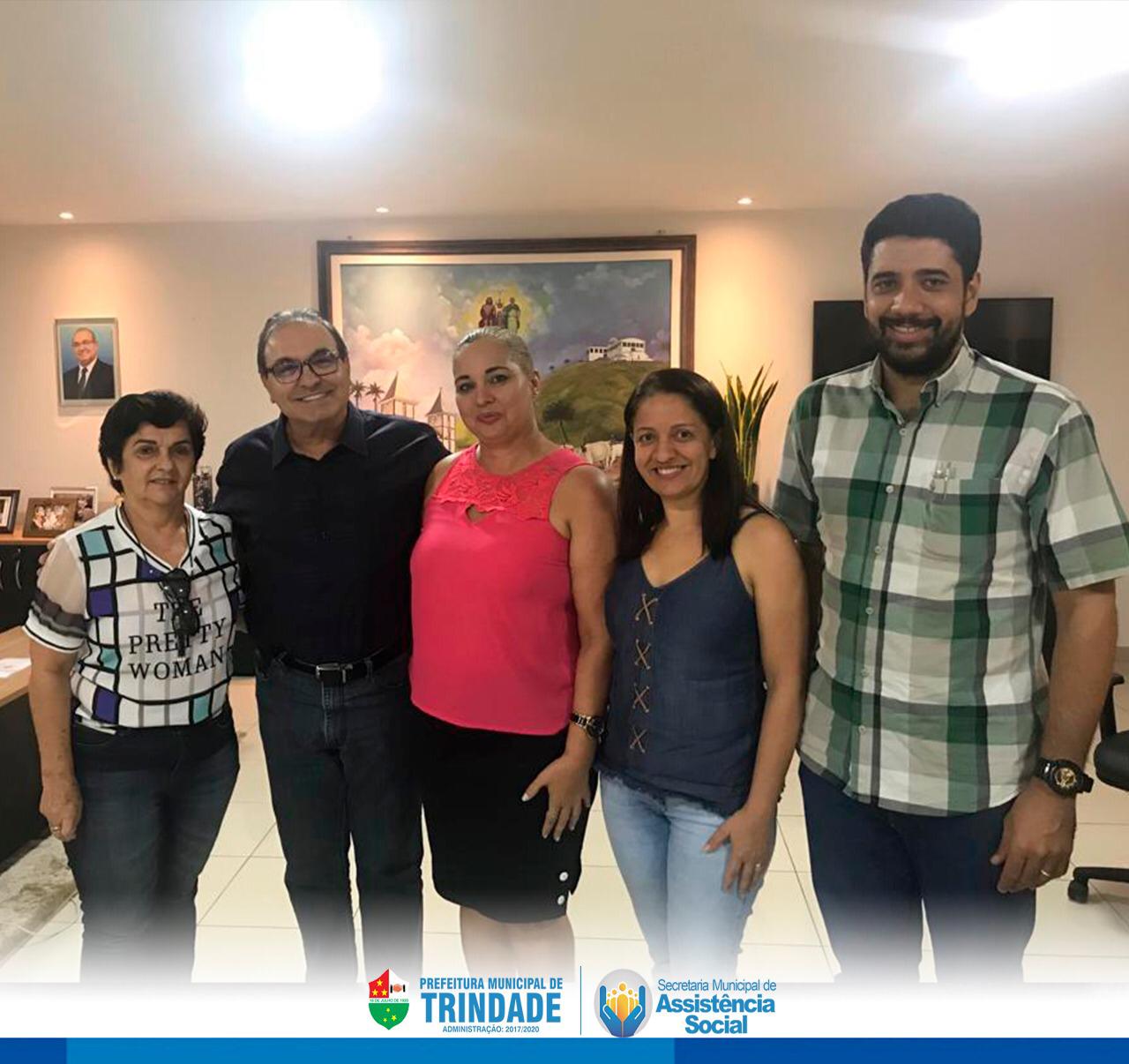 O prefeito Jânio Darrot recebeu a secretária municipal de Assistência Social, Gerúsia de Paiva, em seu gabinete na tarde de quinta-feira (04/04), no Centro Administrativo Municipal. A reunião foi para tratar de assuntos da pasta e do Programa Jovem Sustentável Aprendiz. A iniciativa busca a reinserção social de jovens em conflito com a lei. Em Trindade, ele será implantando nos Centros de Referência de Assistência Social (Cras) e Centros de Referência Especializado de Assistência Social (Creas). Gerúsia de Paiva informa que o programa é uma parceria da sua pasta com o Ministério Público do Trabalho e que Trindade será a segunda cidade do Estado de Goiás a receber o programa. O prefeito Jânio Darrot parabenizou a secretária por mais esse trabalho em prol da população. Segundo ele, são ações como essas que transformam a vida das famílias que mais precisam de atenção e cuidado do poder público. Participaram da reunião a presidente da Comissão dos Direitos da Criança e do Adolescente da Subseção Trindade da OAB, Léria Vinhal, coordenadora do Creas, Mara Núbia, e presidente do Conselho Municipal dos Direitos da Criança e do Adolescente (CMDCA) da cidade, Guilherme Miller.