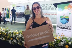 Em meio aos colegas, a professora Terezinha Abadia de Jesus, da Escola Municipal Antônio Lopes Fonte Boa, no setor Palmares, na Região Leste de Trindade, não sabia se escutava o anúncio sobre o reajuste do piso, ou acariciava a caixa contendo o notebook novo que vai ajudar muito, principalmente na pesquisa de conteúdo, preparação das aulas e acessibilidade.