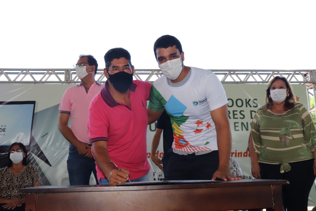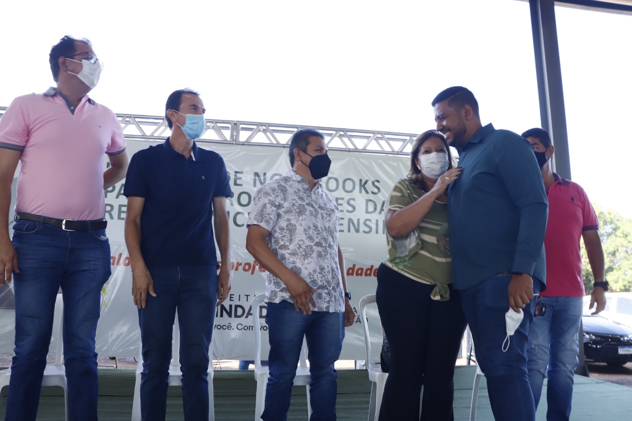 Além da entrega de 780 notebooks Samsung Galaxy de última geração, já formatados e configurados, alguns itens que têm sido enviados às escolas estavam à mostra para o público que compareceu. Aparelhos de ar condicionado, carteiras e mesas escolares novas, e peças do novo uniforme das mais de 13 mil crianças matriculadas em Cmeis e escolas do ensino fundamental, foram apresentadas.