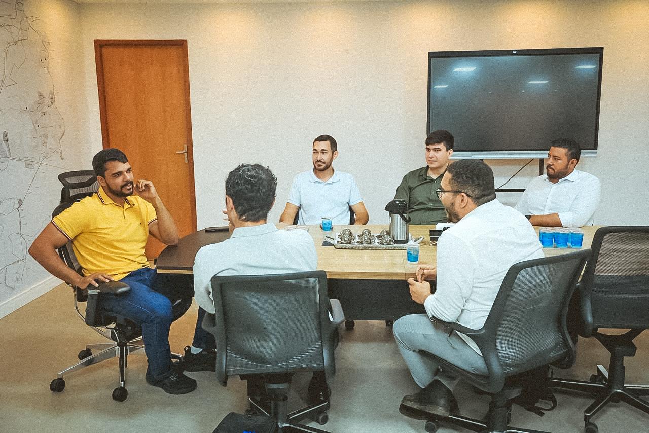 O prefeito Marden Júnior participou, na quinta-feira (19/02), de reunião com o subsecretário de Inovação e Desenvolvimento Sustentável da Secretaria de Estado de Ciência, Tecnologia e Inovação de Goiás, Raphael dos Santos Veloso Martins, superintendente de Inovação e Tecnologia, Gabriel Augusto Silva Alves, e deputado estadual Cristiano Galindo. O encontro reforçou o compromisso do município com o avanço tecnológico e o desenvolvimento sustentável. O encontro também contou com a presença dos secretários municipais Josimar Mota (Planejamento) e Lhinicker D’Orazio (Gestão).