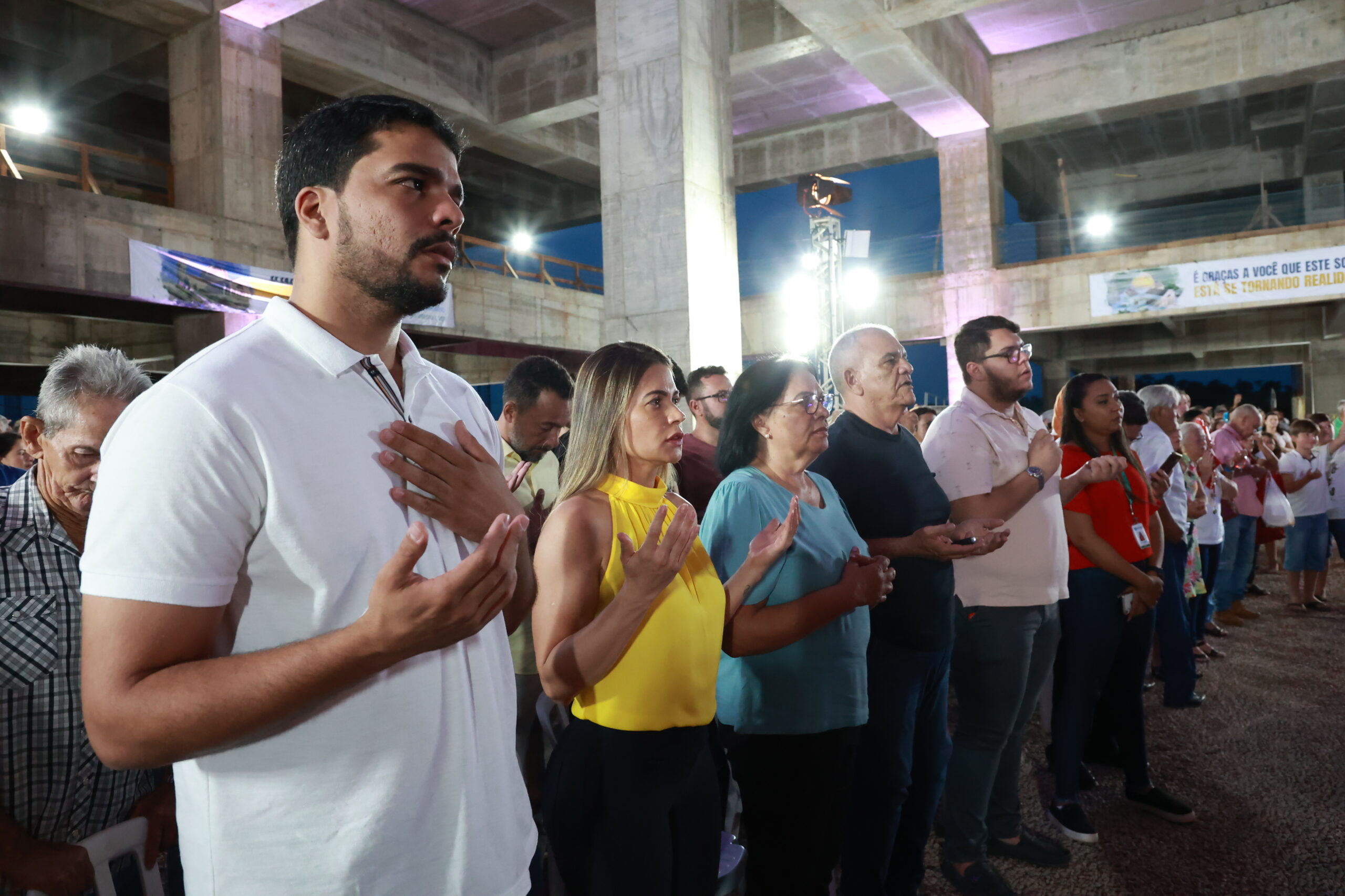 O prefeito Marden Júnior participou da missa solene de lançamento oficial da Romaria em Louvor ao Divino Pai Eterno 2023, neste sábado (04/03), no canteiro de obras da nova basílica.