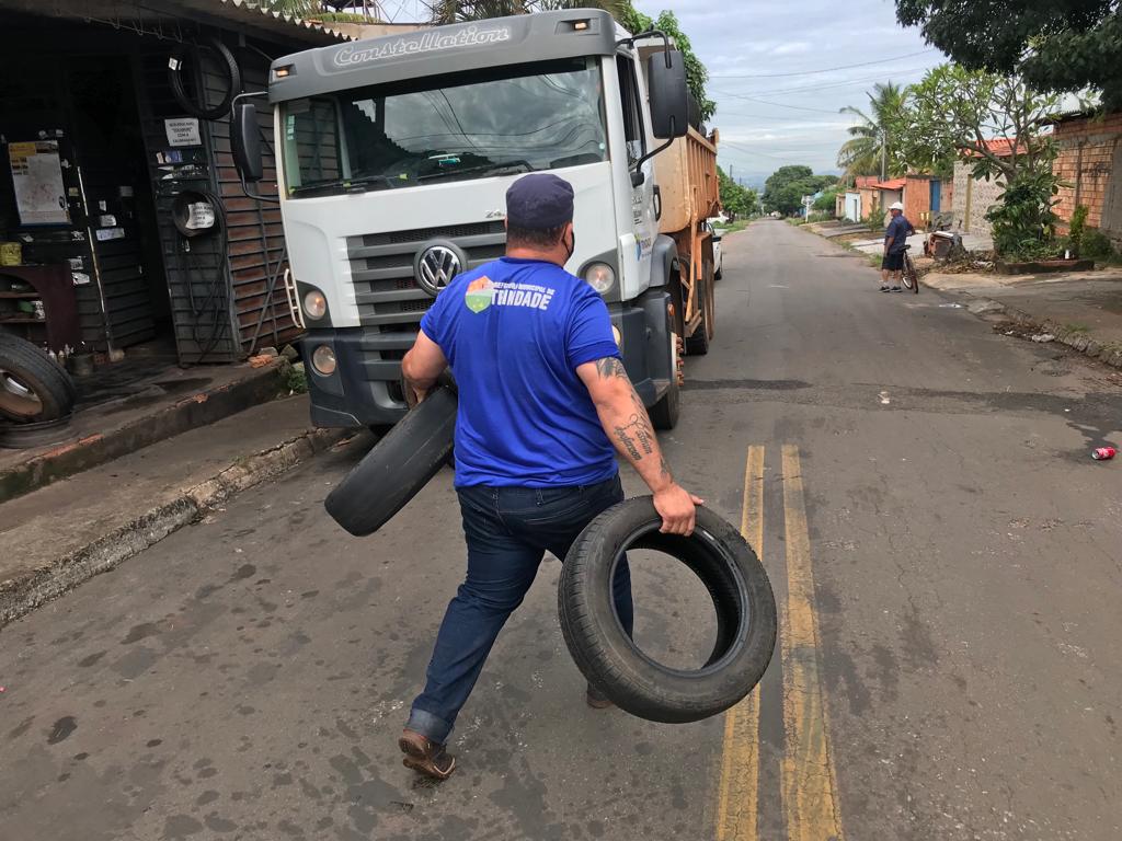 A Prefeitura de Trindade, através da Secretaria Municipal de Meio Ambiente (Semma), criou novas rotas para reduzir a deposição de pneus usados em calçadas. Apenas em um dia de fevereiro, o município recolheu 1.100 pneus em bairros da Região Central.