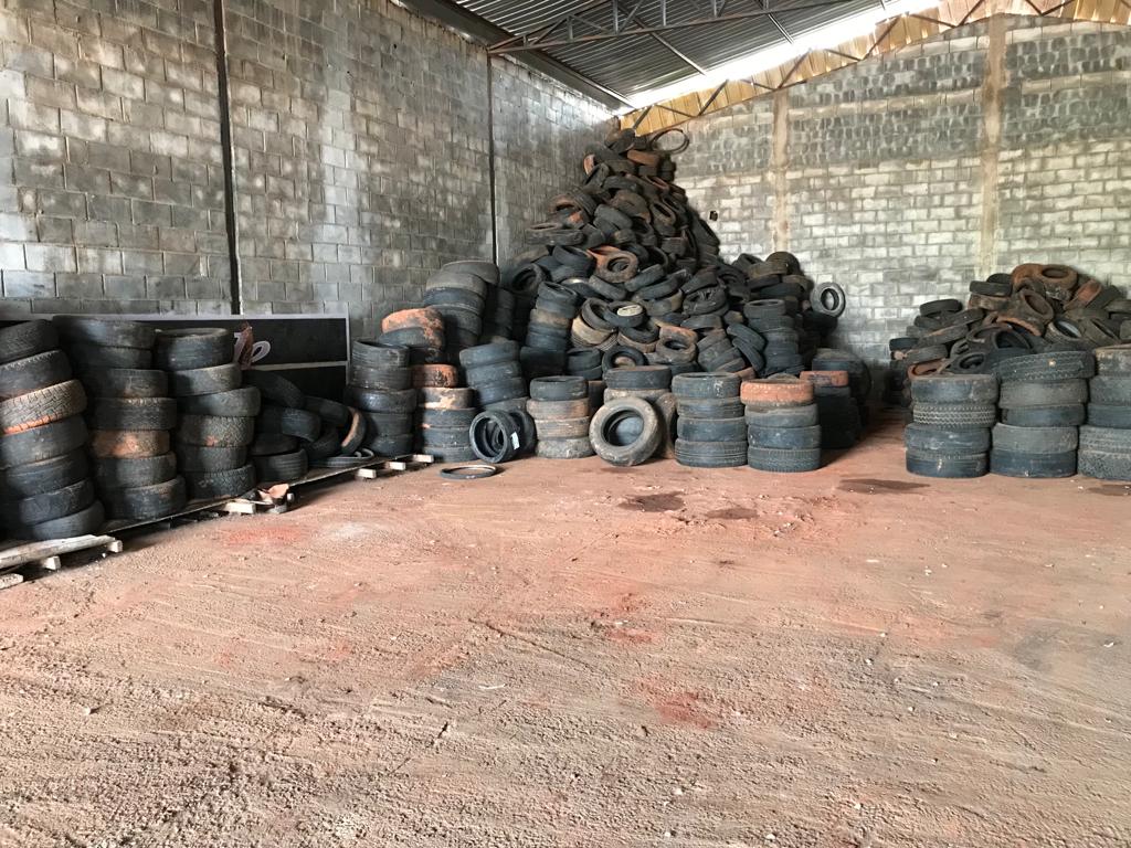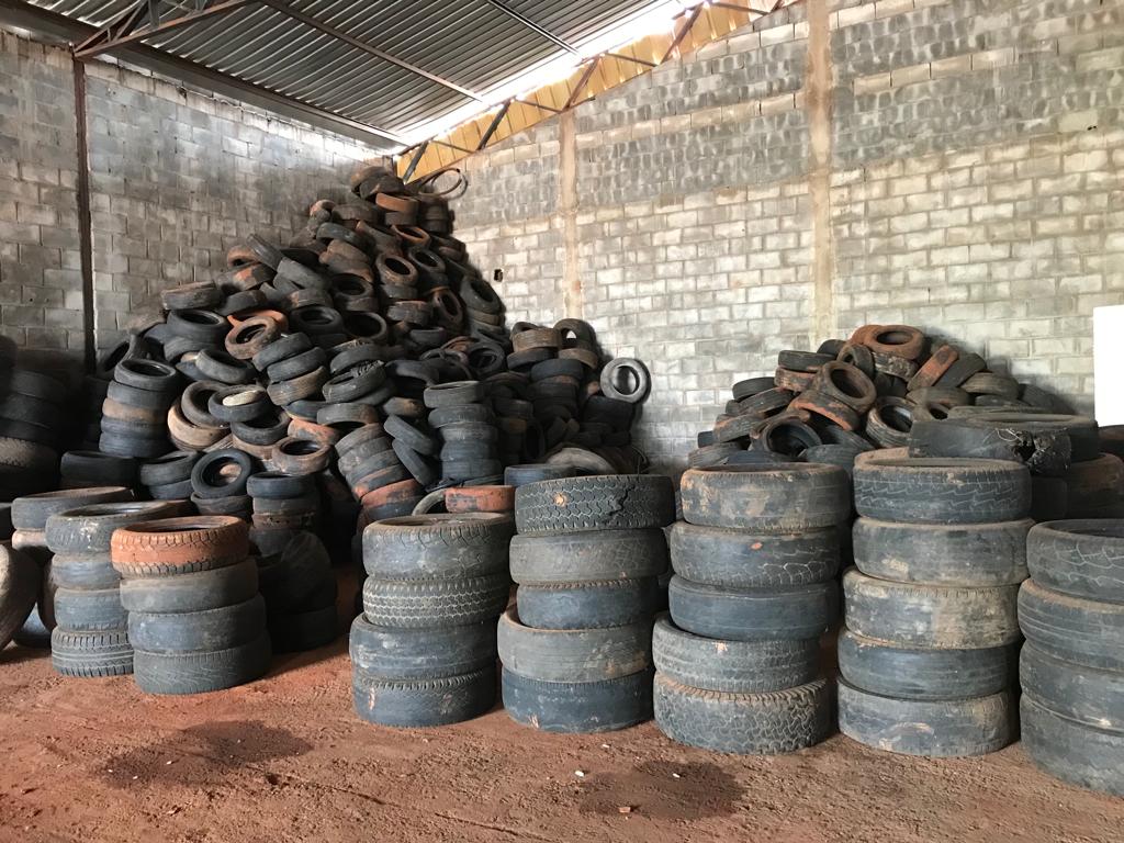Os caminhões que agora ampliaram os pontos de coleta transportam os pneus usados até um depósito no Setor Laguna. Lá, eles são separados por tamanho e fazem verdadeiras montanhas. Quando o galpão fica cheio, uma empresa instalada em Abadia de Goiás, que faz o reaproveitamento desse tipo de material, faz o transbordo dos pneus para a transformação deles.